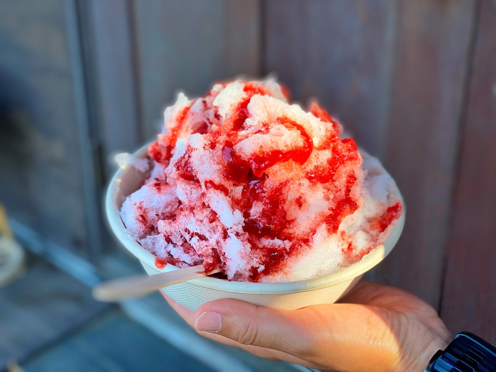 地元産の果物の果肉を使ったかき氷がおすすめ。