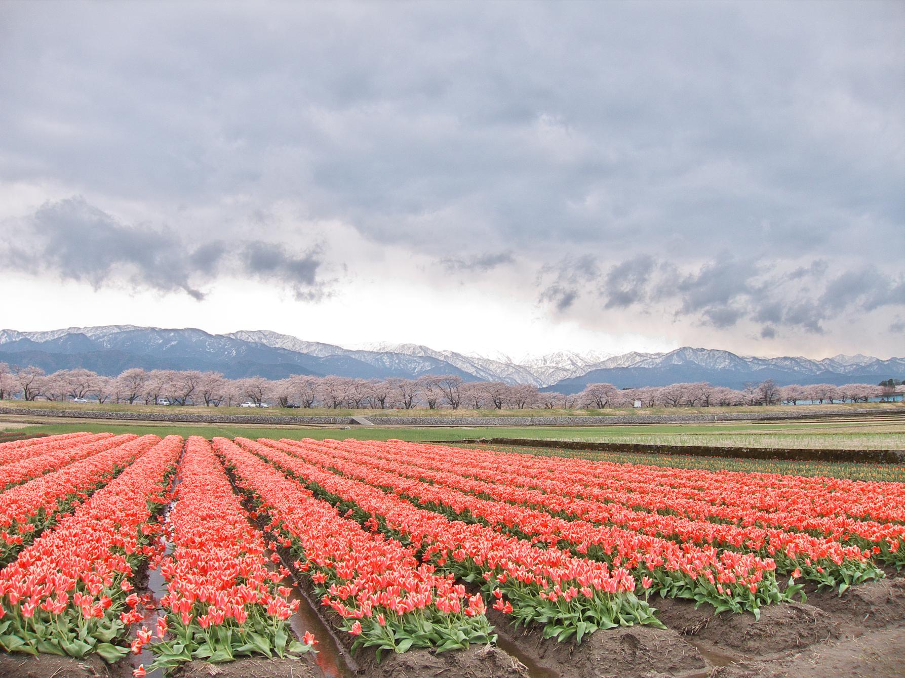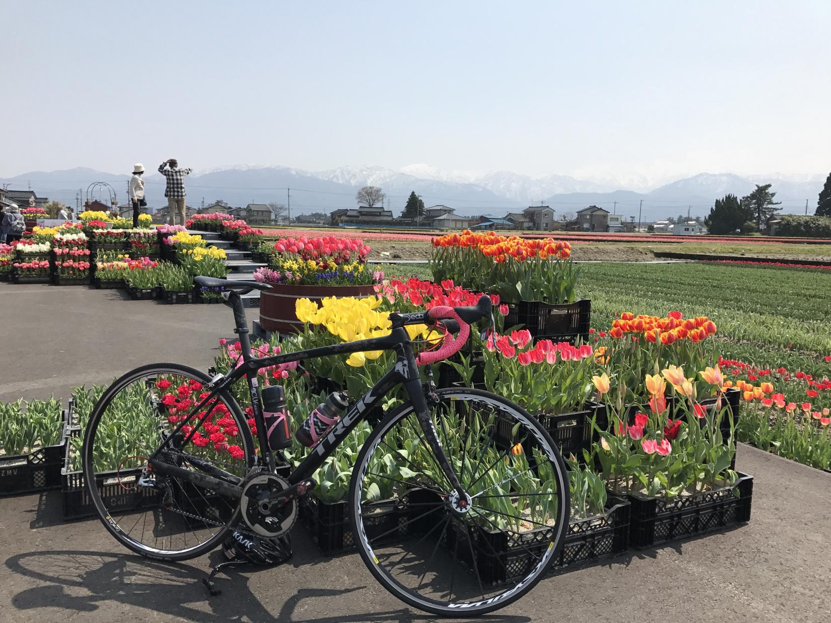 砺波市も有名ですが、入善のチューリップは残雪の北アルプスを背景にした景色がすばらしく、チューリップフェア「にゅうぜんフラワーロード」には多くの観光客が訪れます。