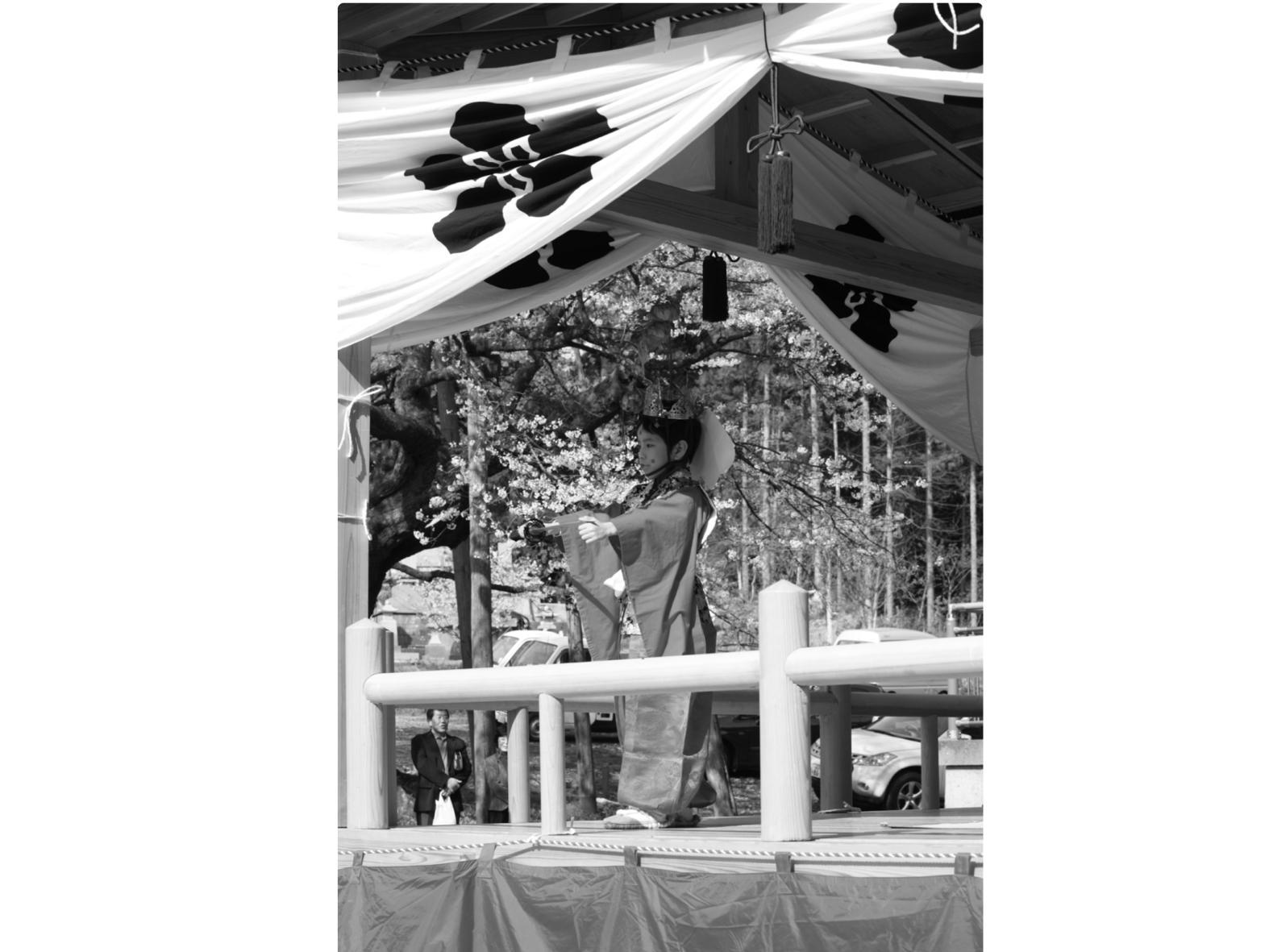 4月第3日曜には、「越中の稚児舞」として国の重要無形民俗文化財に指定されている「明日の稚児舞」が、大桜の前庭にある舞台で奉納されます。