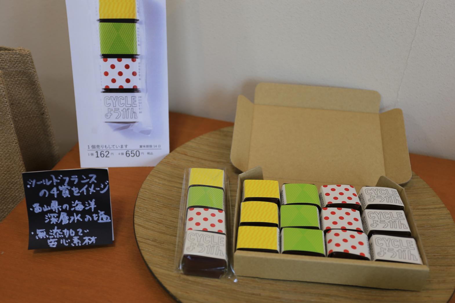 「世界で最も美しい湾クラブ」に加盟している富⼭湾を眺めながら⾛⾏する「富⼭湾岸サイクリングコース」沿線の氷見市の老舗和菓子店が開発した羊羹。