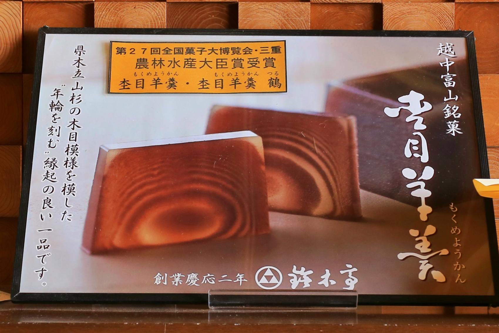 中でも特産立山杉の美しい年輪模様をモチーフにした杢目羊羹は、どこを切っても木目模様が現れる、全国唯一の羊羹です。