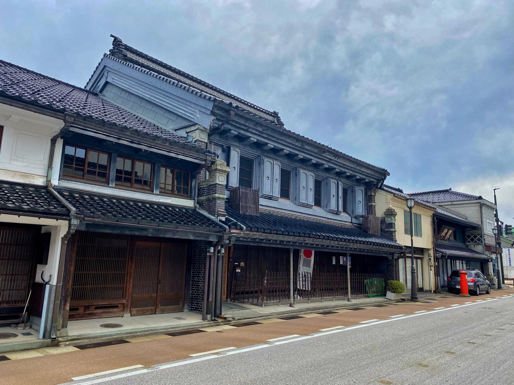 「山町筋」(2km地点)は、旧北陸道沿いにあり、土蔵造りなどの歴史的建造物が立ち並び、1609年(慶長14年)の高岡開町以来の商人町で、ここを中心に住まいする10町で高岡御車山祭を奉じていることから山町(やまちょう)と呼ばれ、長く高岡のまちの経済を牽引してきました。