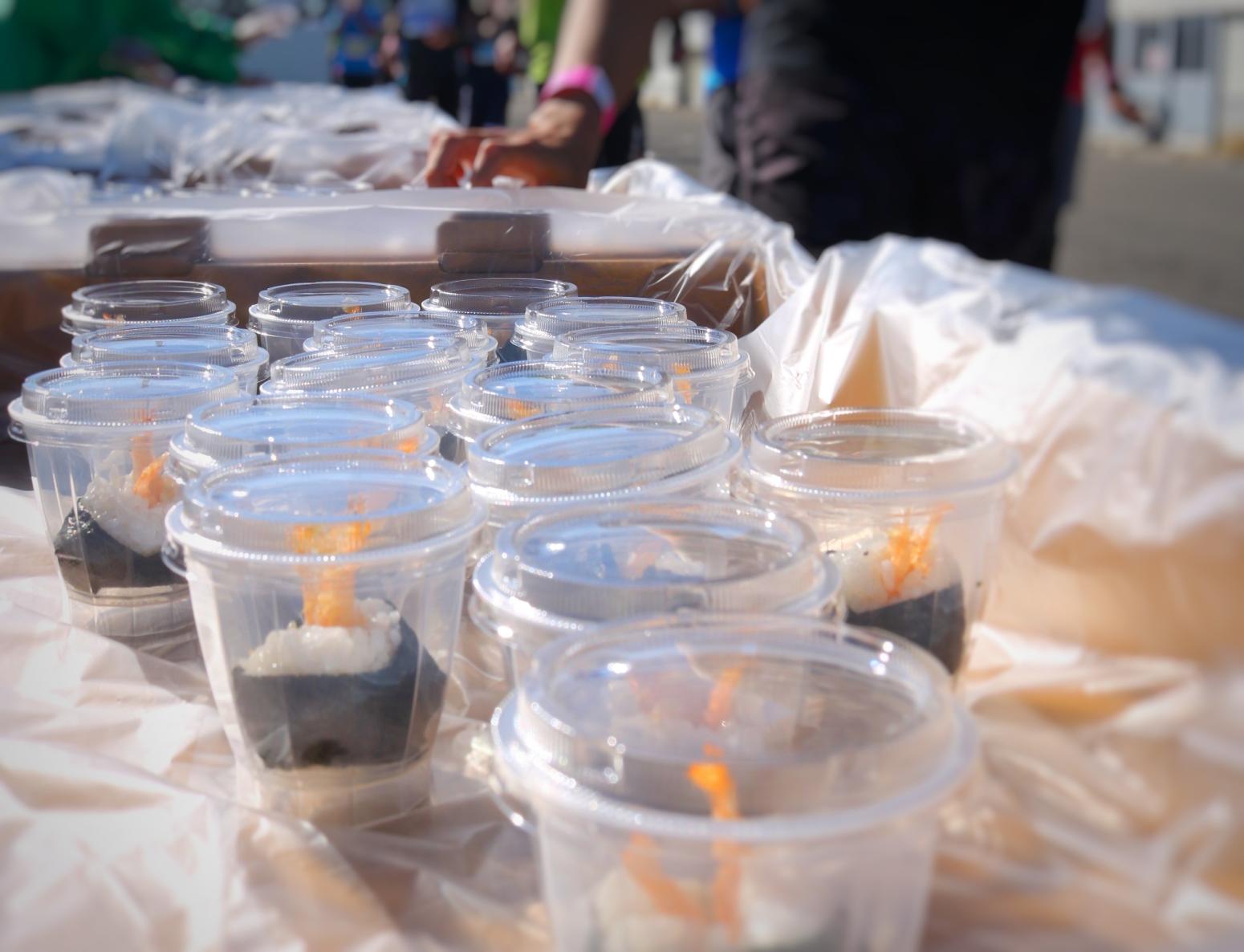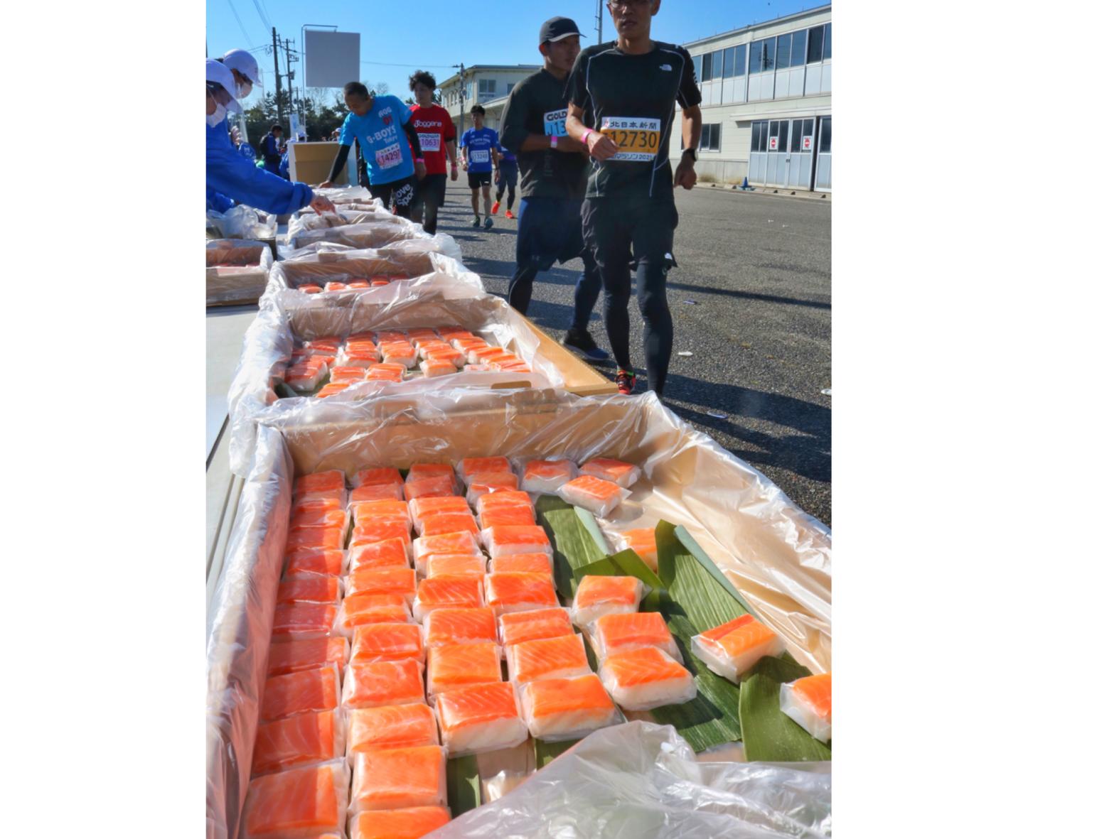 最大の難関に差し掛かる前の18.5km地点では、おまちかねの「ますずし」と「白えび天むす」のおもてなしが待ってます!