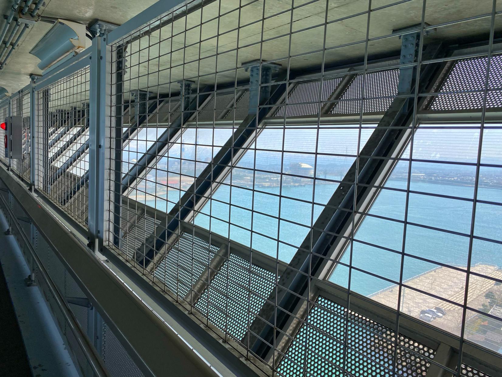 プロムナードからは景色は窓に閉ざされて視野が狭く、立山連峰のパノラマを見ることが出来ません。