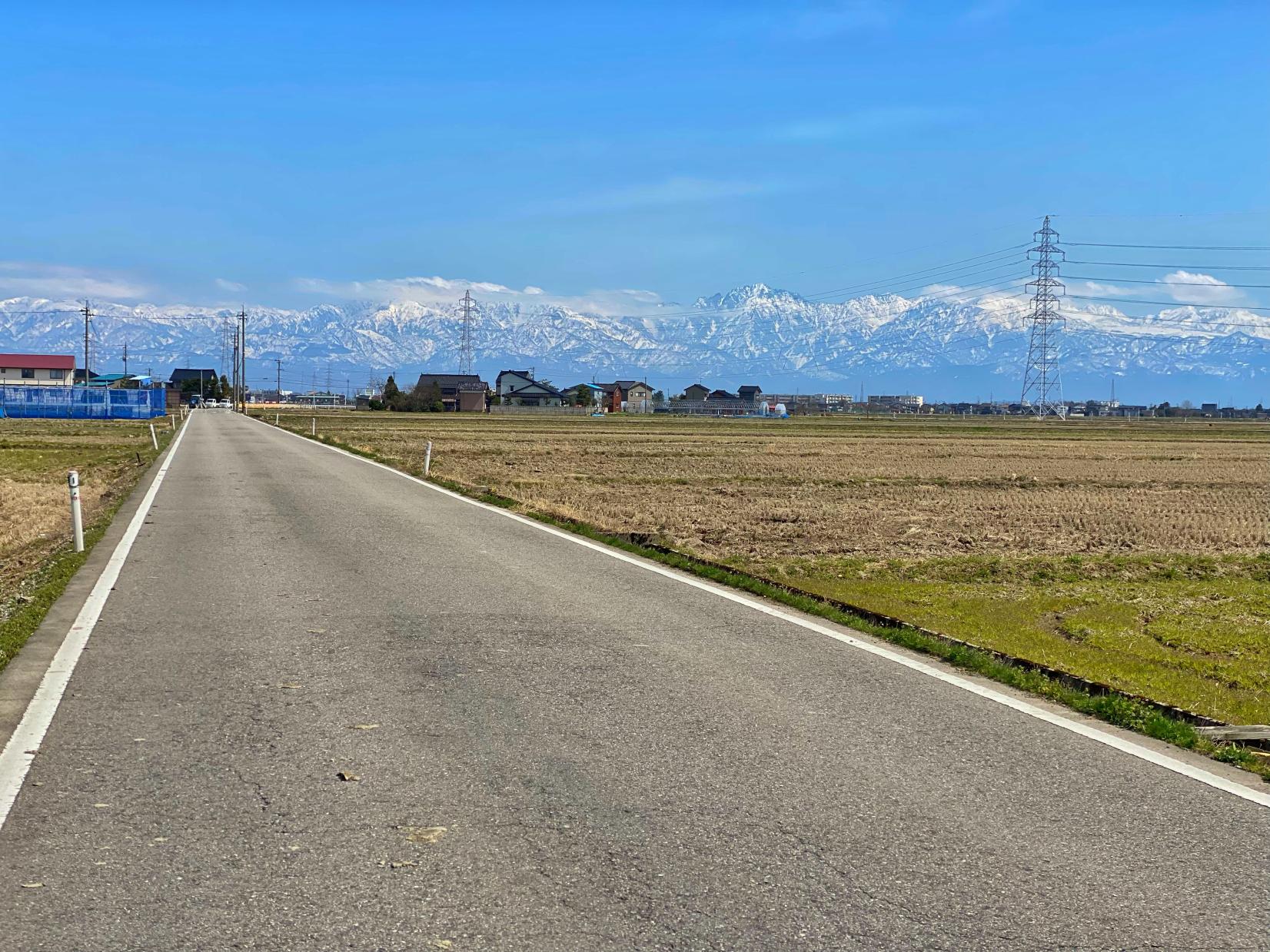 田園地帯を過ぎれば富山市街地に入っていきます。ゴールまであと約6km。ゆるやかにアップダウンする北代一呉羽兵陸があります。富山北大橋を上りきればゴールは目の前。ビル越しに間近に迫る立山連峰は富山市ならではの光景。高層ビルと3000m級の山々を同時に望める場所は、日本中探してもそんなに無いはず。立山連峰を脳裏に焼き付けて帰ってください。