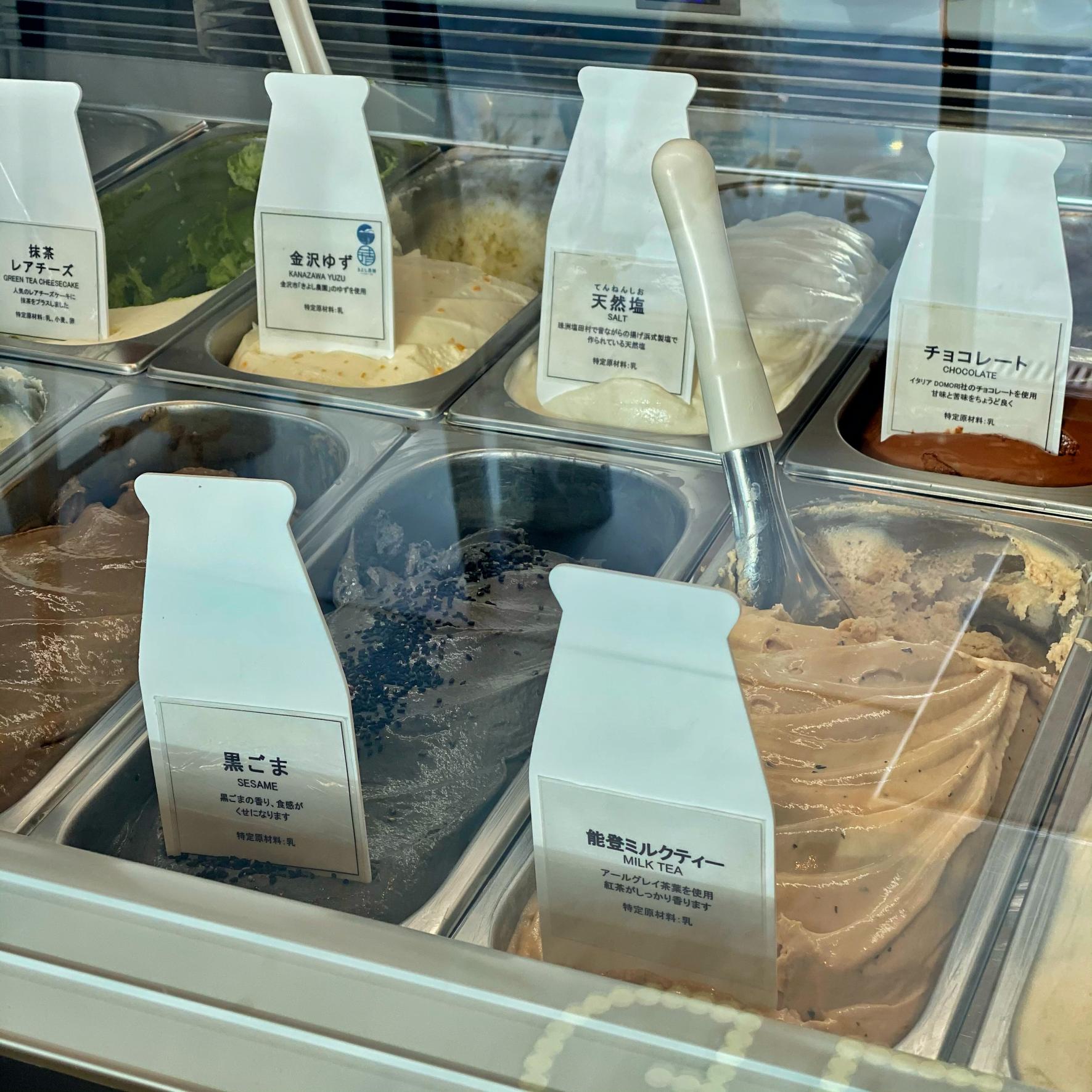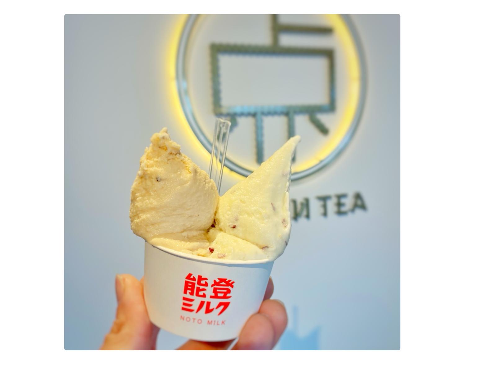 能登ミルクのジェラートのほか、ラテ、ティーなどで乾いた喉を潤してくれます。