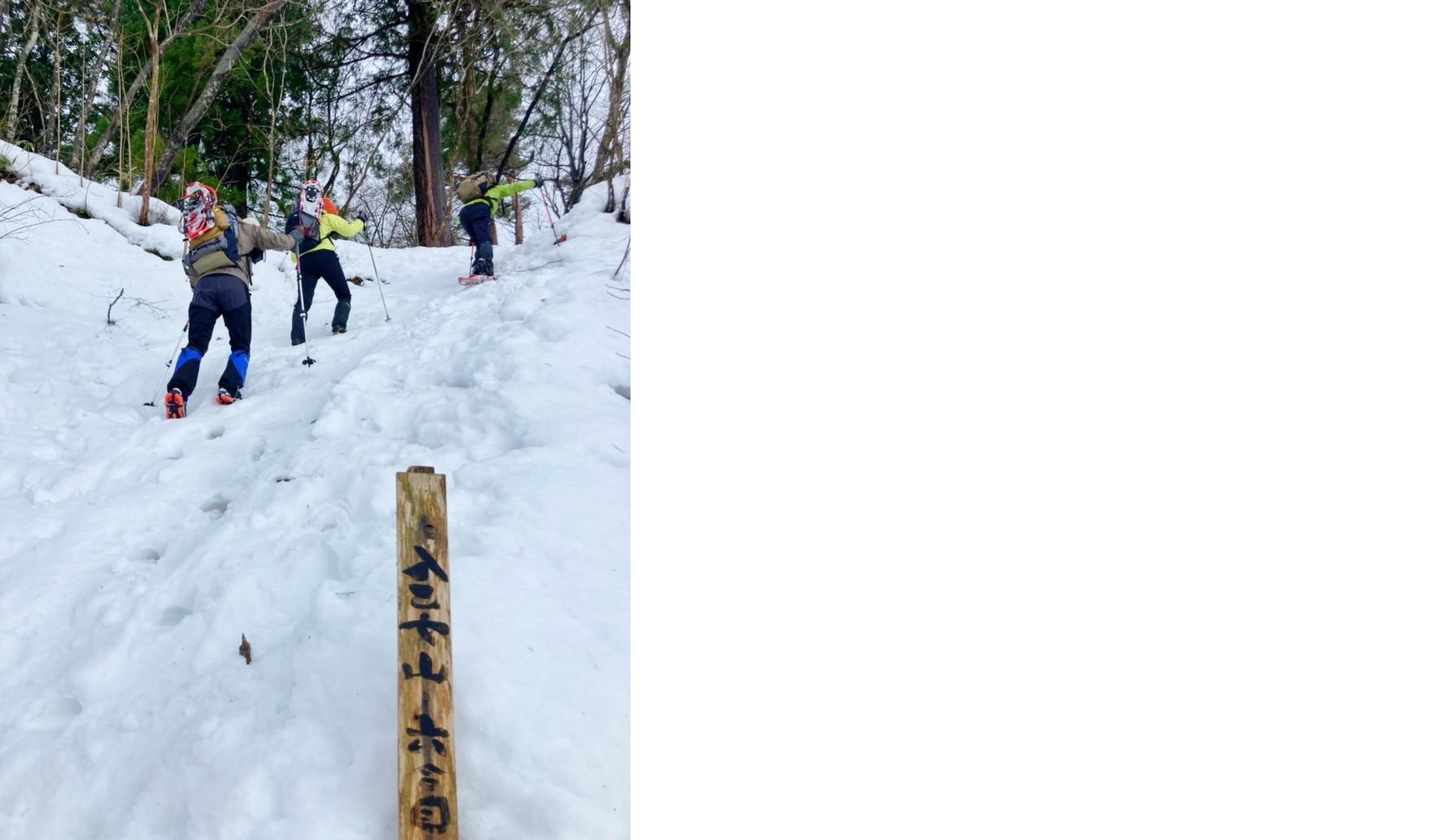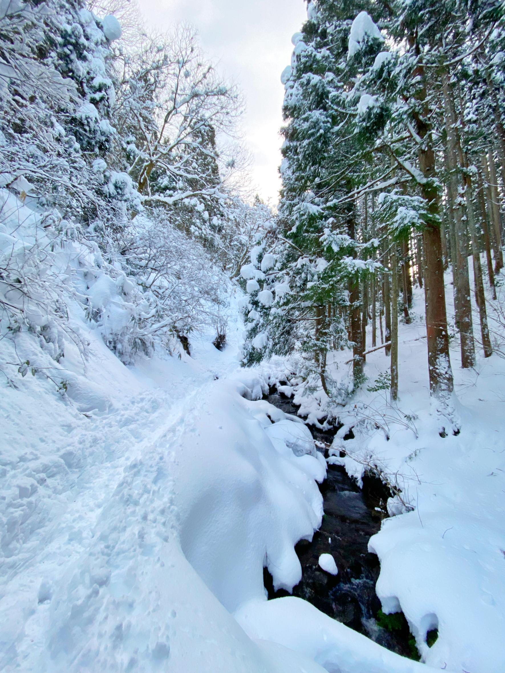 雪が降ると折角あったトレースが消えてルートがわからなくなる危険性が高まります。特に平日に降った雪や前日の夜に降った雪は、そのあとの登山者が少ないためトレースが無いことがあります。朝早くではなく、少し時間をずらす。土日に行くなら日曜日に行くなど、ある程度登山者が入った後に行くことをお勧めします。