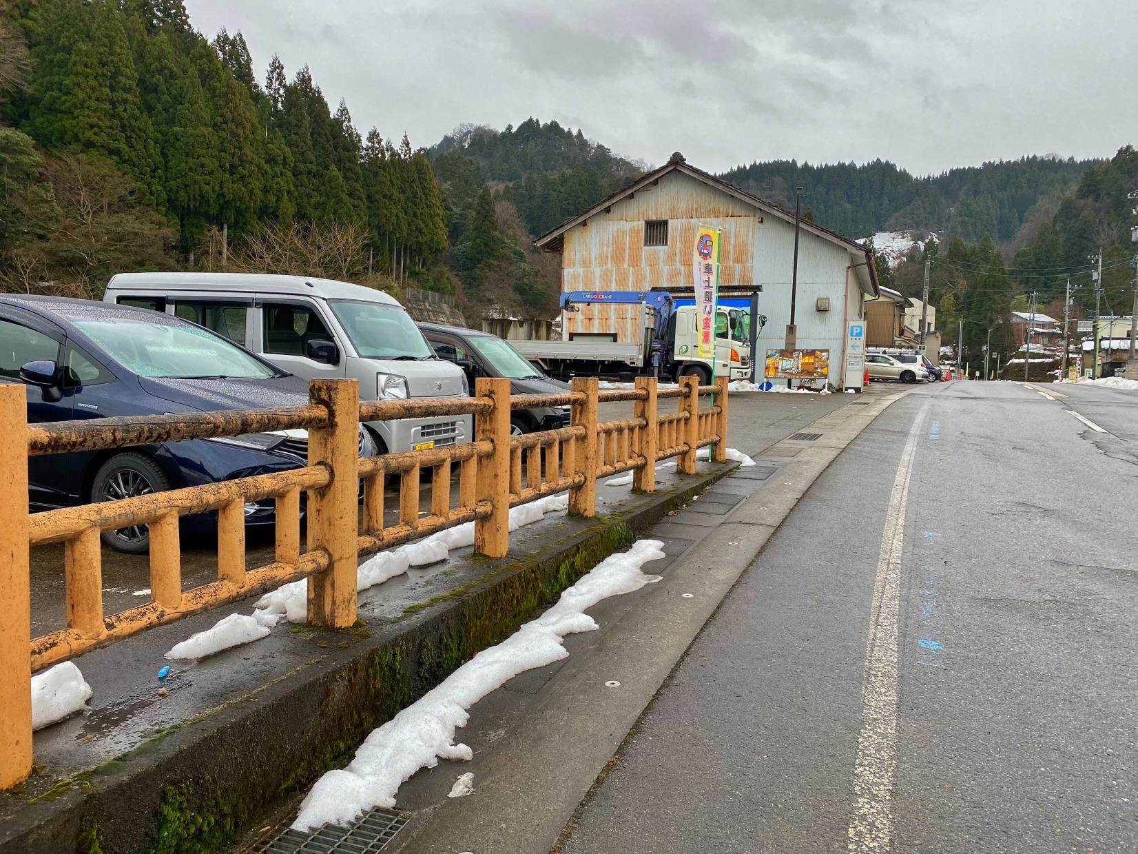 横江集落を通り、橋を渡り右折し林道を突き進みます。