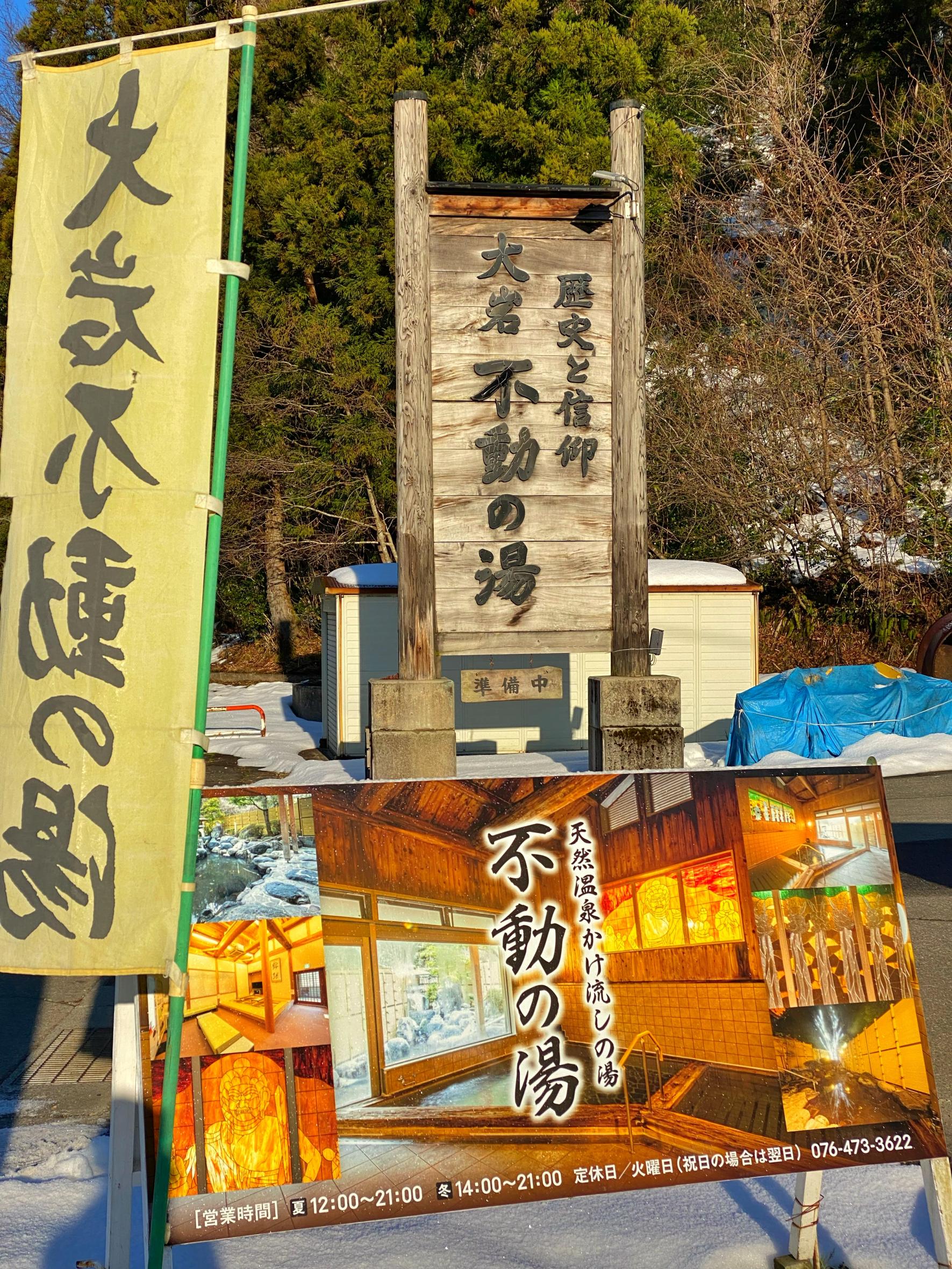 駐車場から100mほど下ったところに温泉「大岩不動の湯」があります。