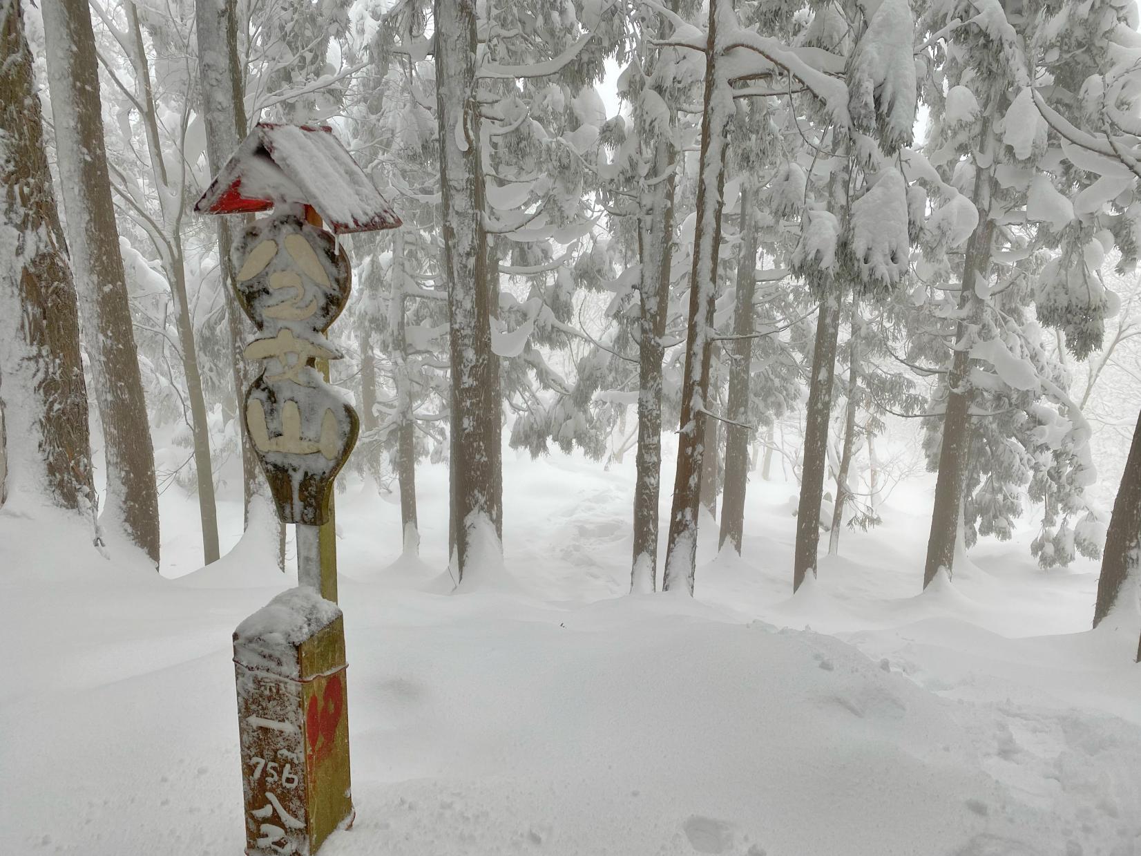 駐車場より大岩日石寺を目指します。大岩そうめんで有名な金龍の向かい側にバスロータリーとトイレがあり登山口となります。小さな橋を渡ると案内板がありコースを確認できます。森林セラピーロードと呼ばれる杉林を突き進むと第一休憩ベンチに到着。さらに進むと集落付近のY字路に差し掛かり左折します(右折しても合流します)。第二休憩ベンチで休憩をすますとそこからの登りが少し急になります。岩場は雪がないことが多いですが凍結していることもるのでロープを伝いながら登りましょう。岩場をすぎれば山頂までもうひと踏ん張り。