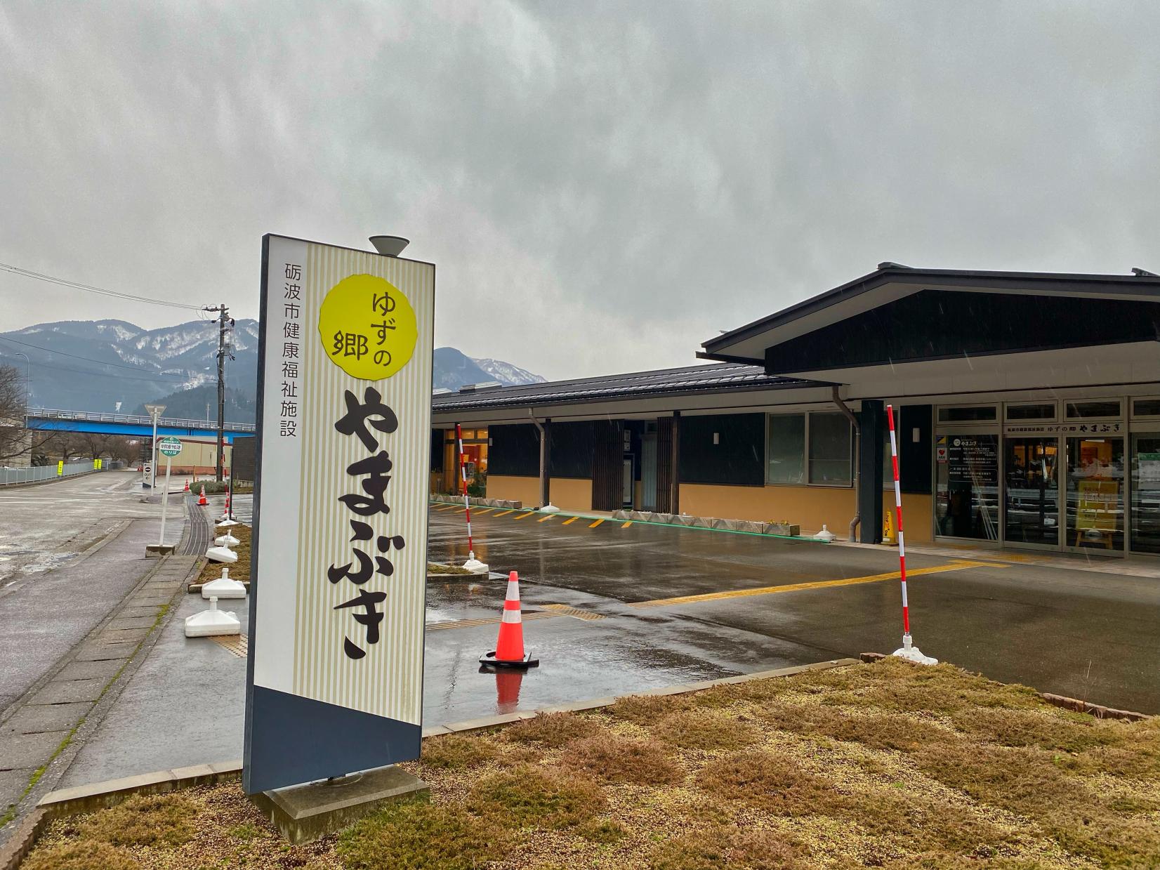 駐車場から3kmほど離れた、庄川沿いに温泉「ゆずの郷やまぶき」があります。