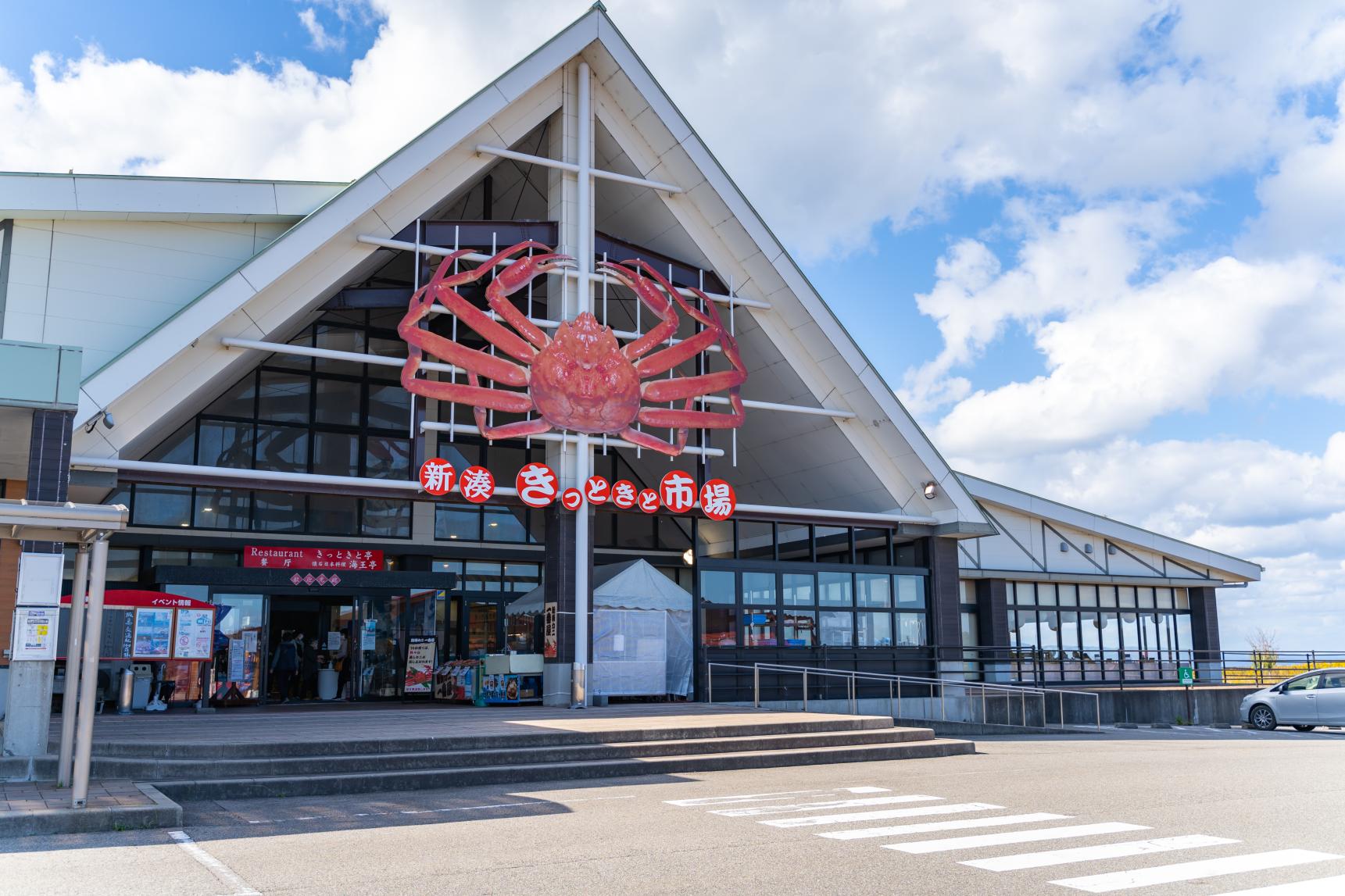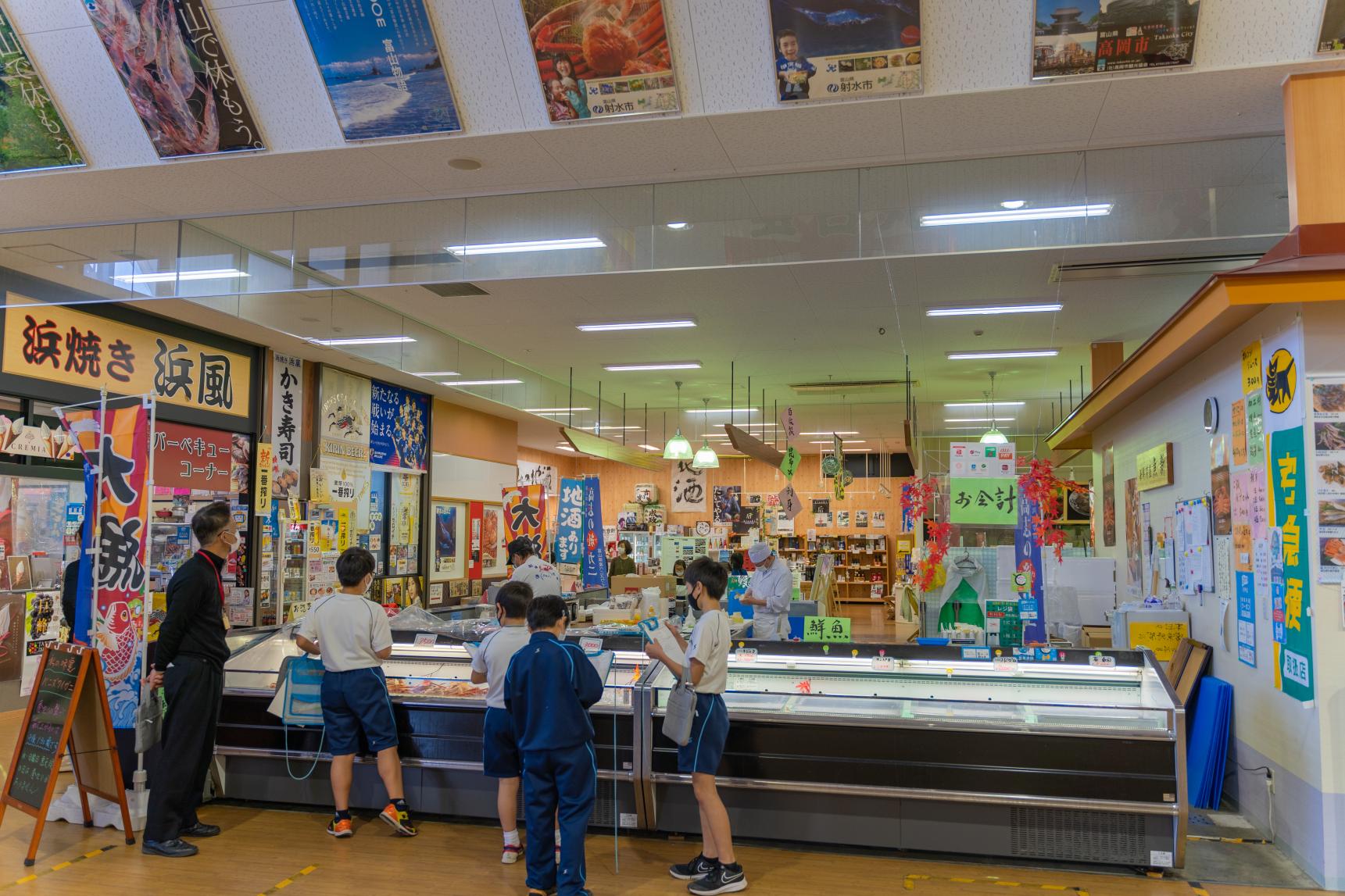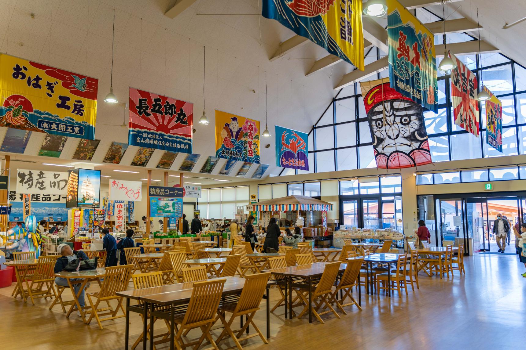 海王丸パークから少し行った先には様々なご飯、お土産屋さんが集まる「新湊きっときっと市場」。