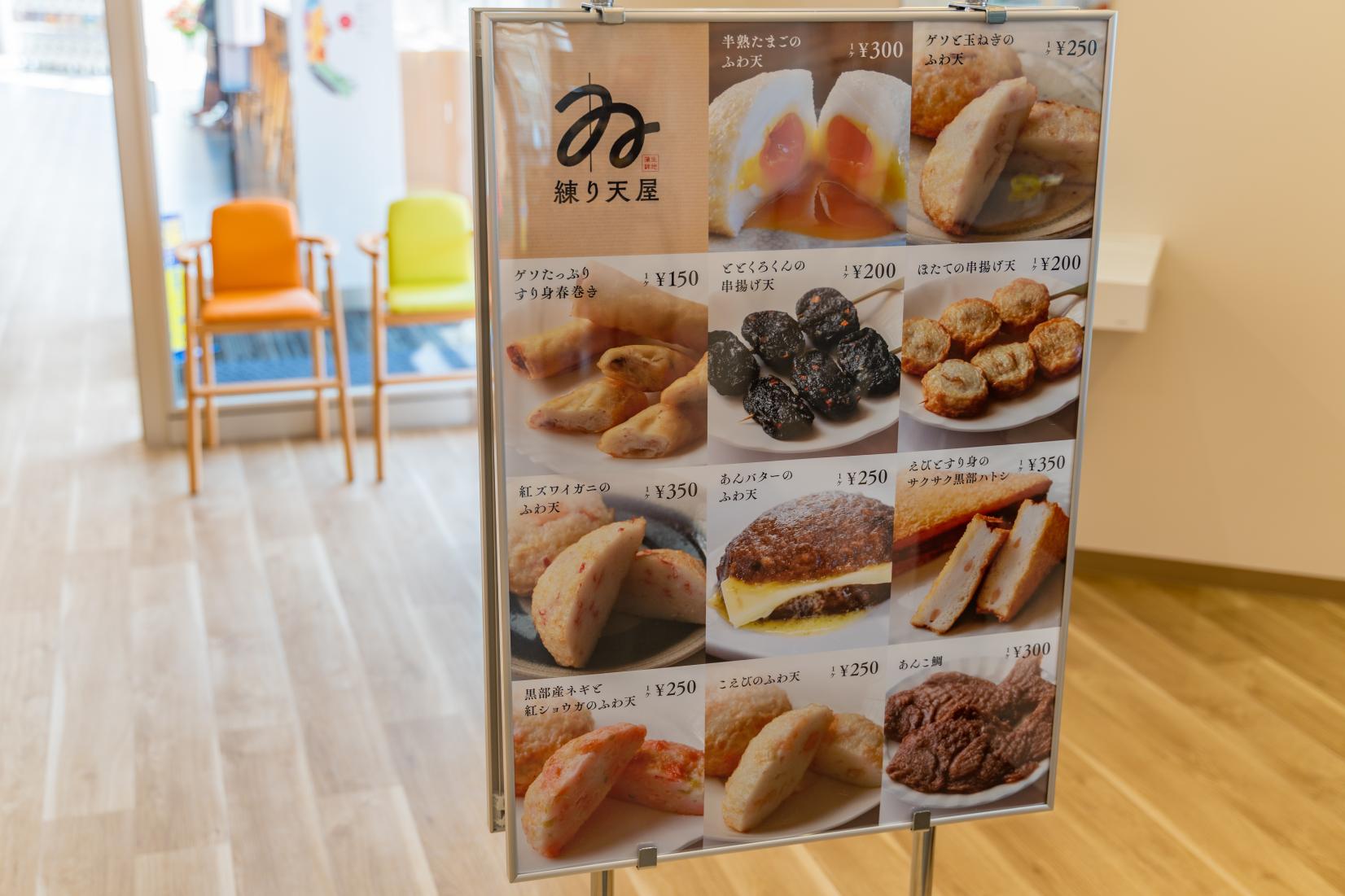 昭和2年創業、黒部の老舗蒲鉾屋さんの生地蒲鉾さんが出店されている「練り天屋」さんです。