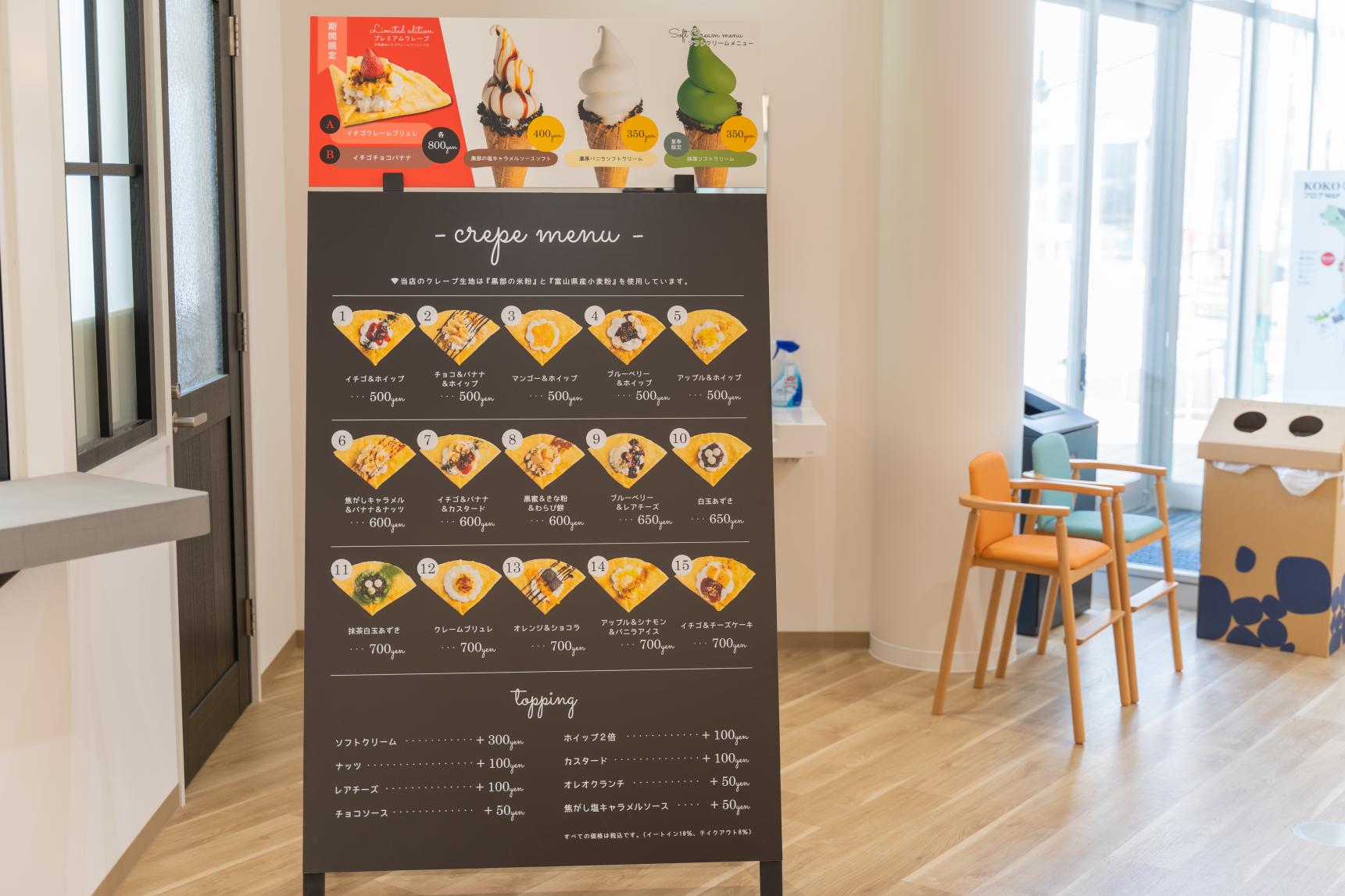 黒部の米粉と富山県産の小麦粉を使ったモチっとしたクレープ生地が特徴的なクレープ屋さんです。