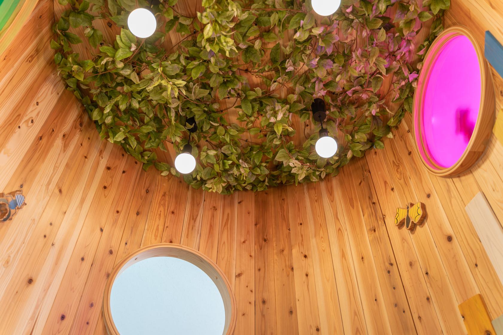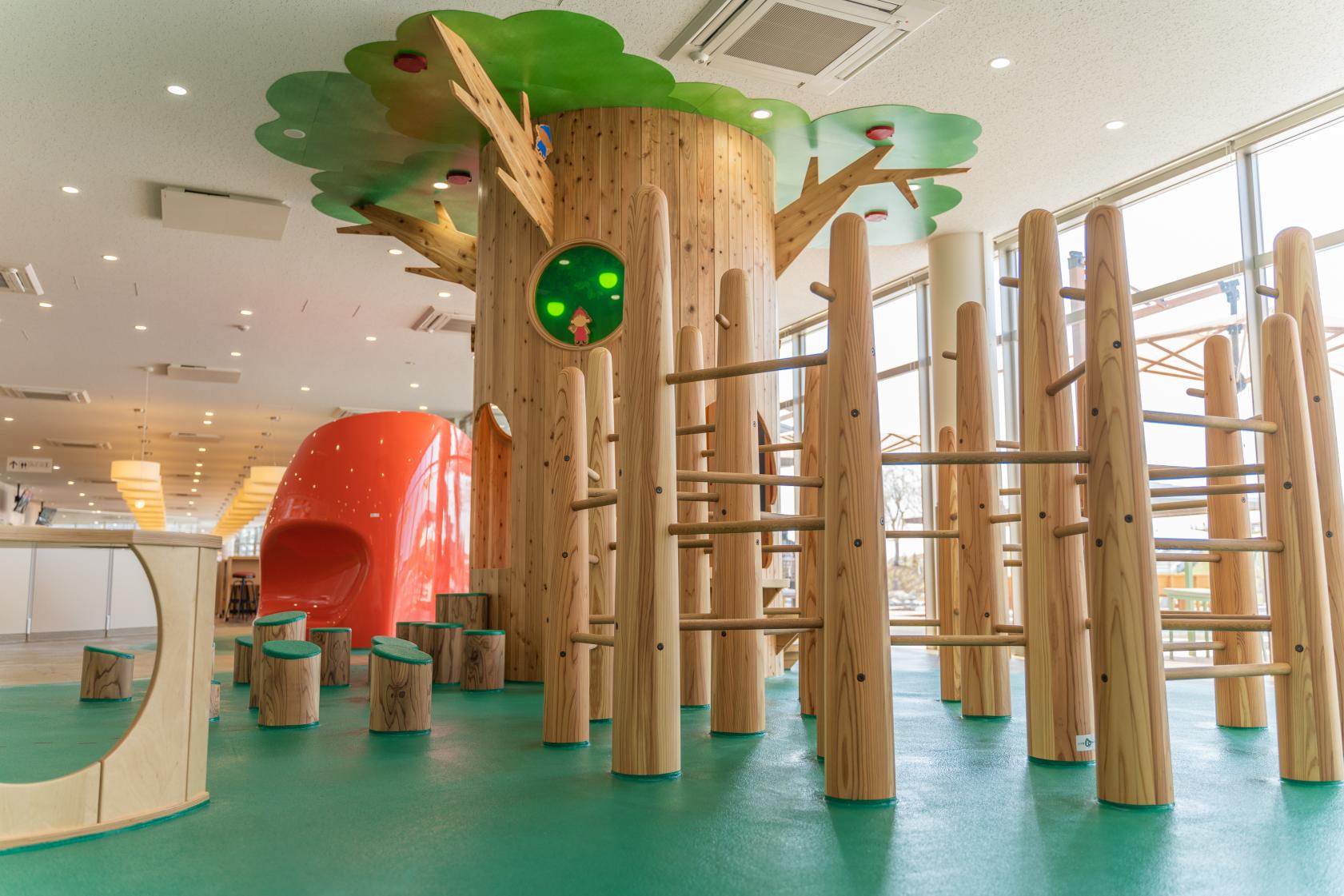 森をイメージしたキッズフロアは、木製の遊具が色々とある室内の遊び場になります。