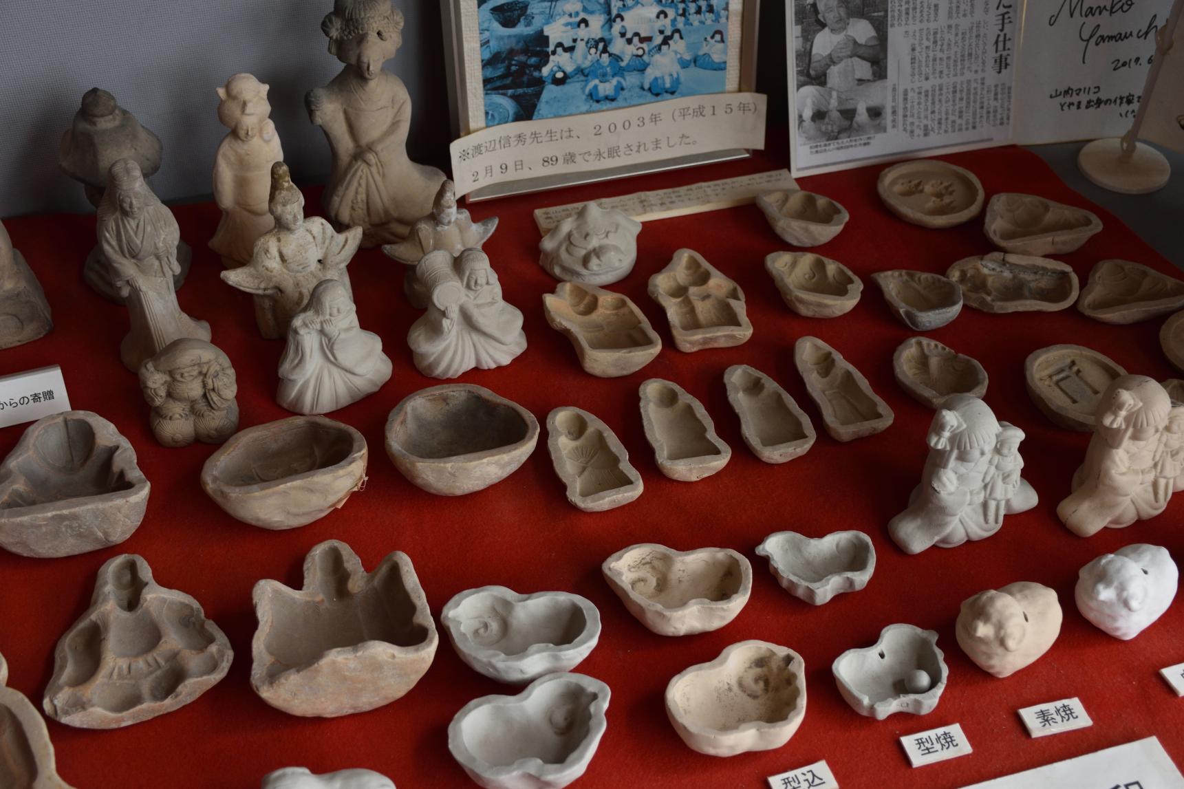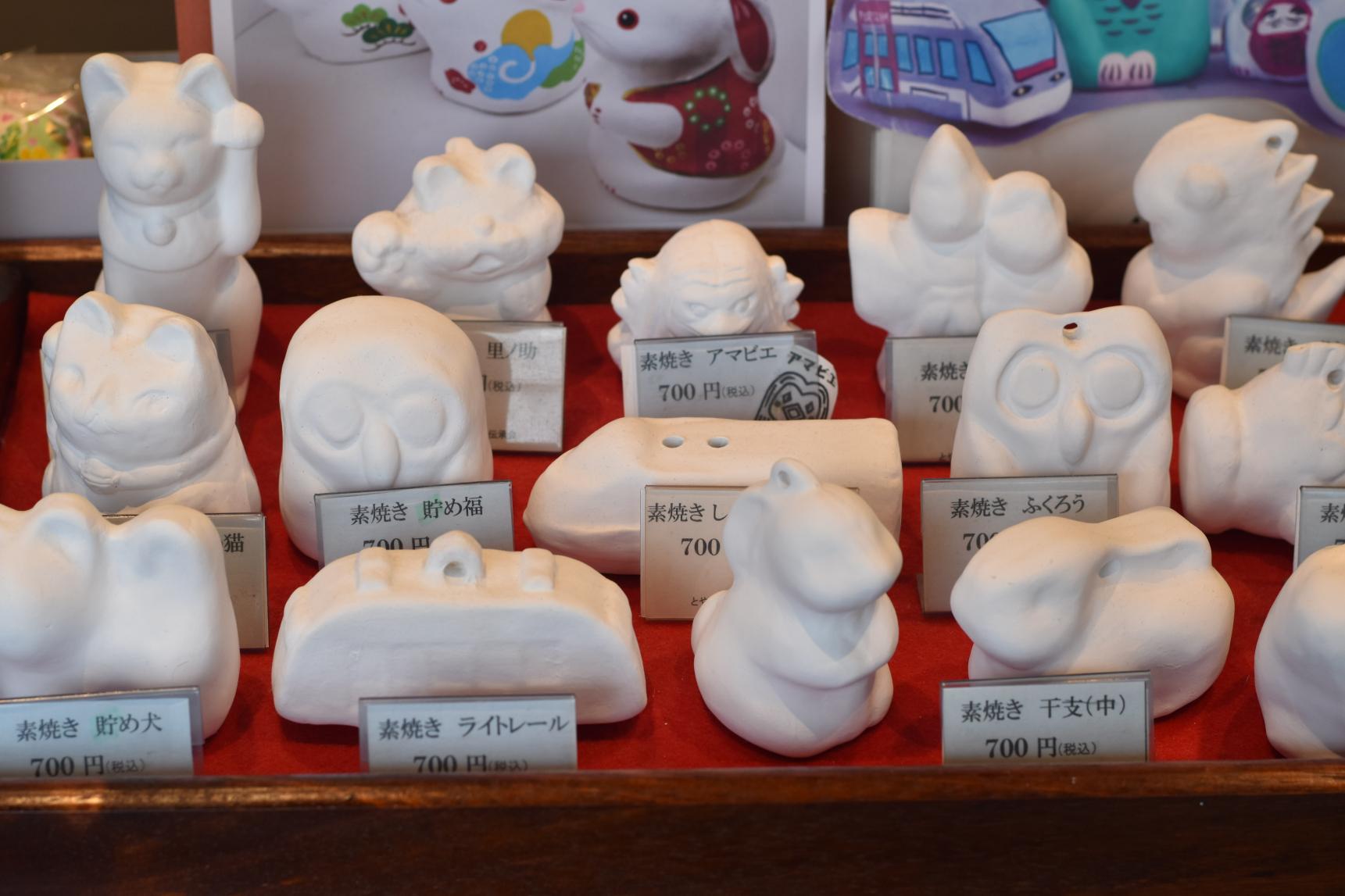 それでは絵付け体験してみましょう。まずは1階で絵付けする土人形を選びます。