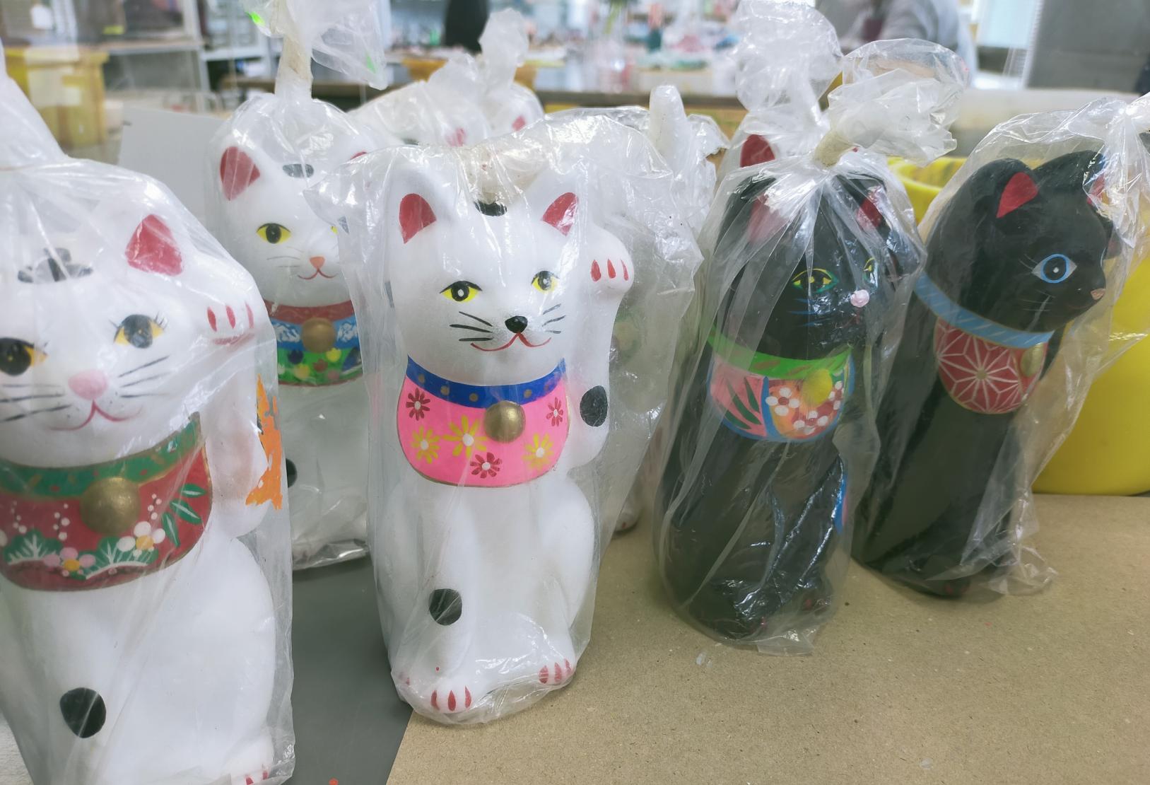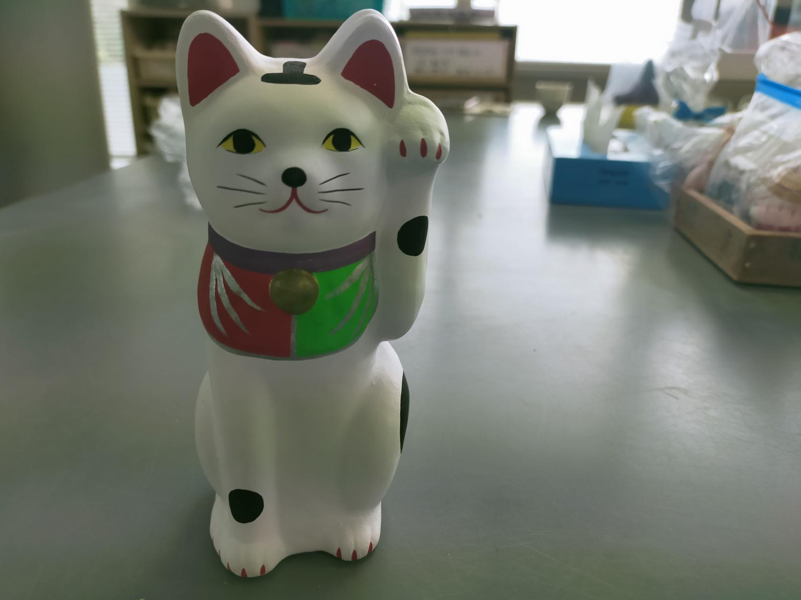 ちなみに私が見本としたのはこちら、師匠の渡辺信秀氏の伝承の招き猫でした。シンプルながら絶妙なバランスで描かれた招き猫、とても素敵です。