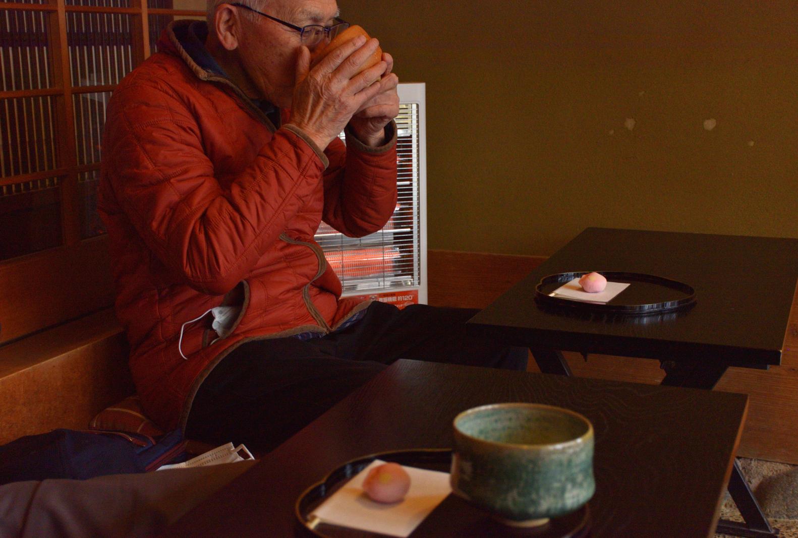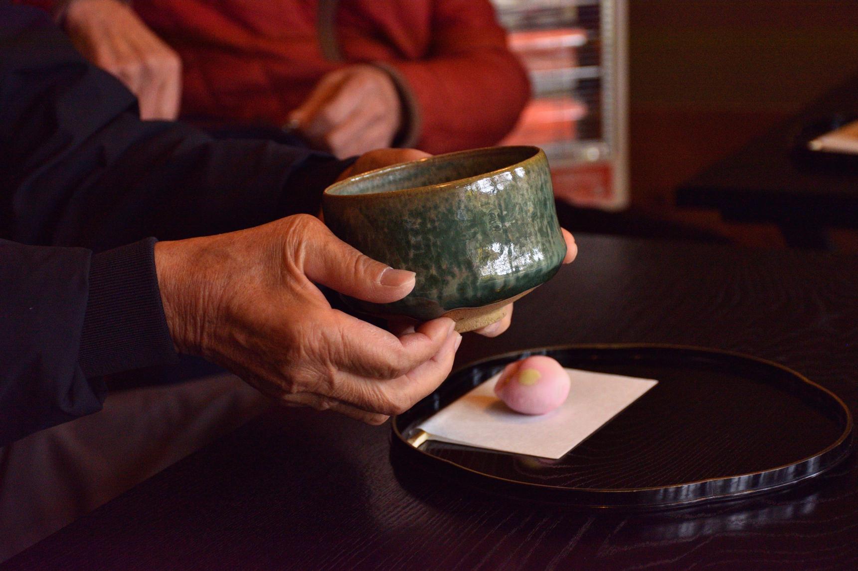 工房向かいの円山庵ではお抹茶と和菓子を立礼式でいただくことができます。お庭を眺めながらゆっくりしましょう。五百羅漢はすぐそば。この辺りは紅葉が楽しめますので秋に訪れるのもおすすめです。