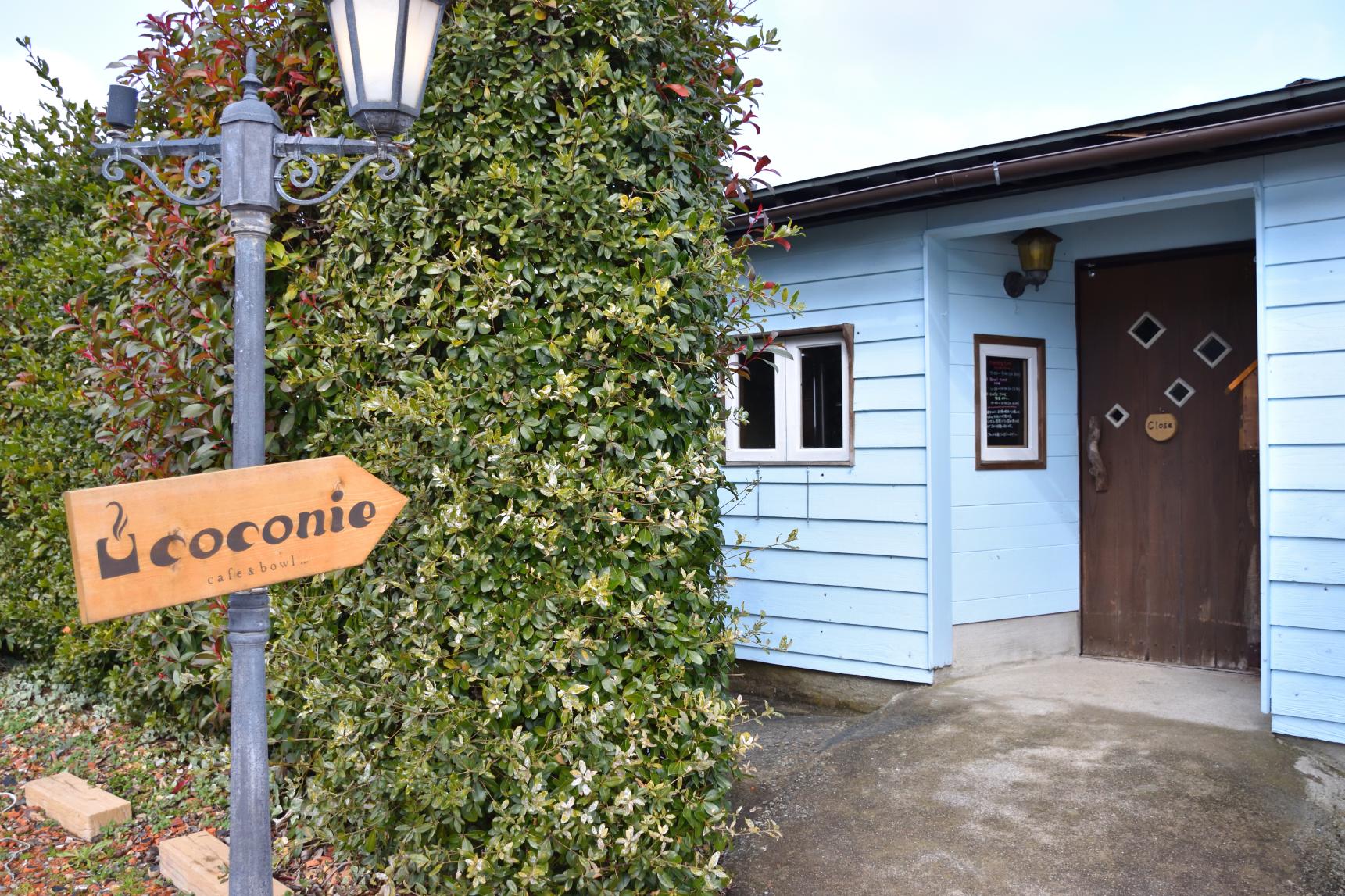丘に建つ「cafe&bowl coconie」は絵本の中にいるようなかわいいお店。自家焙煎珈琲やドリンクはもちろん、ハンドメイドケーキや軽食もいただけます。