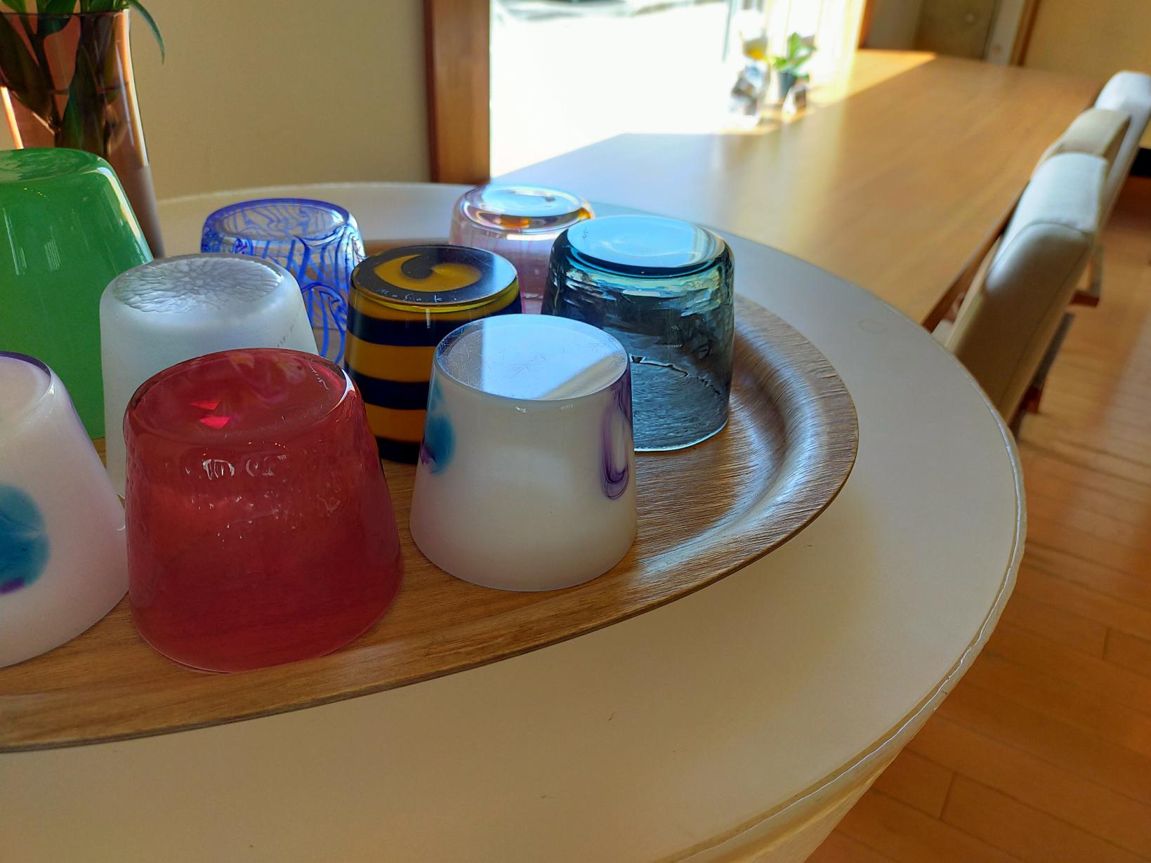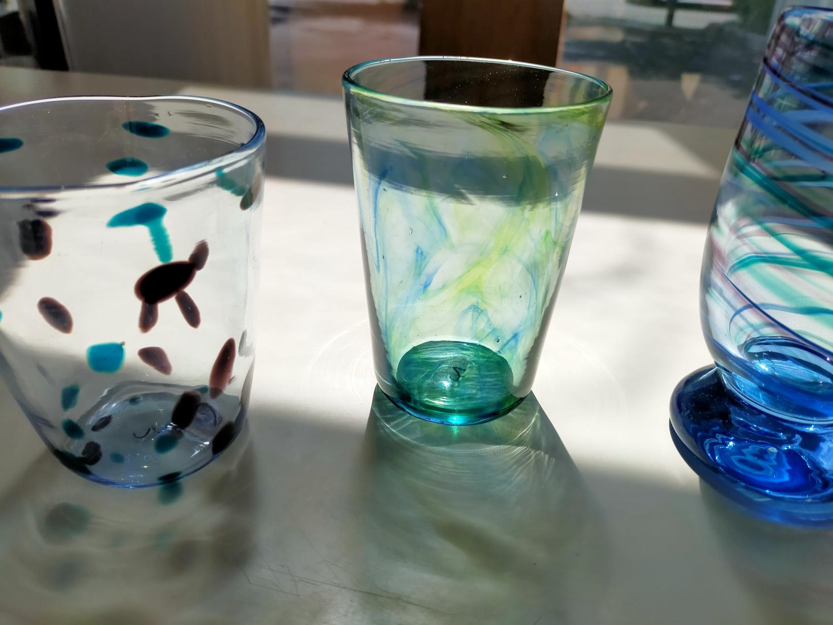 作製したガラスはそれぞれ形も模様も違って十人十色。ちょっとした歪みも手作りならではの味わいです。