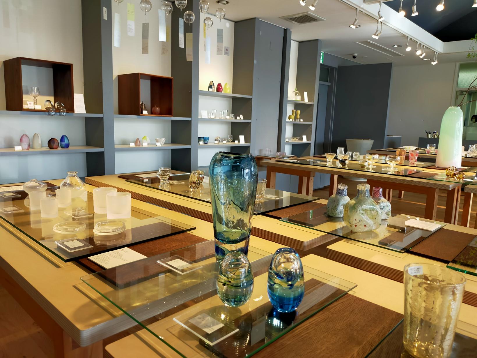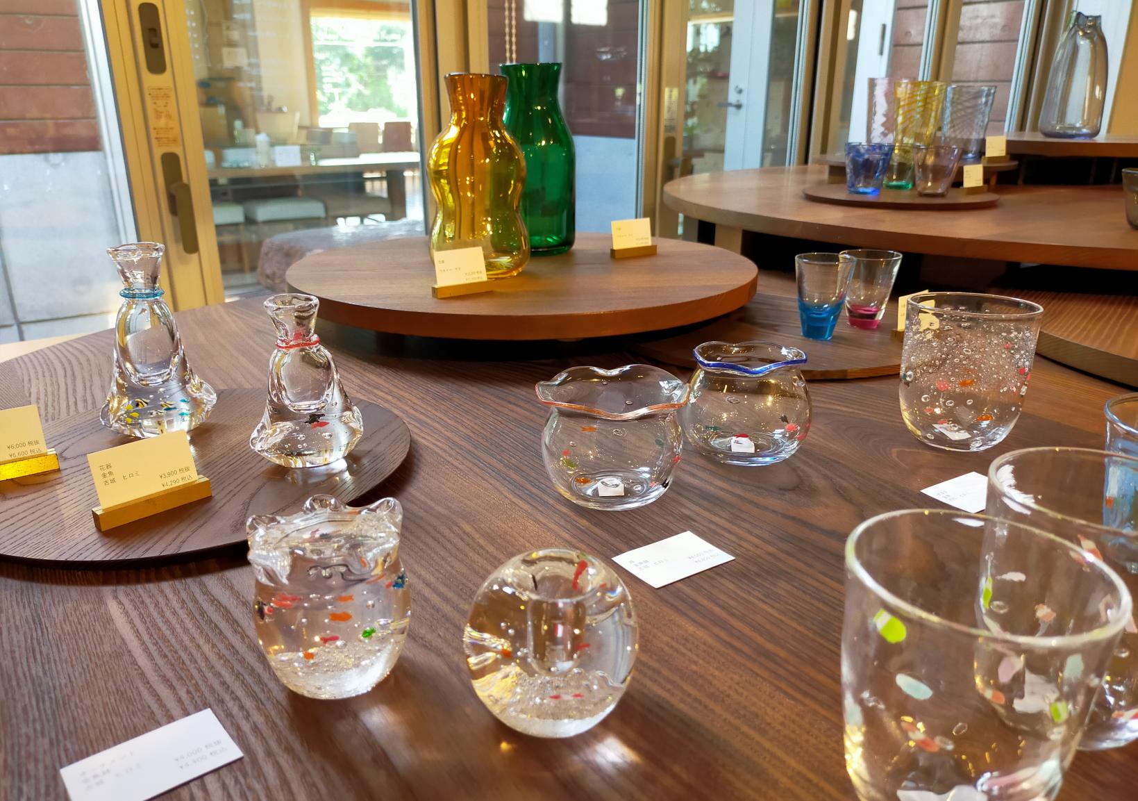ショップではガラス作家が制作したガラス製品を購入できます。個性あふれるガラスの器やアクセサリーは見るだけでも楽しい。お気に入りを購入したり、大切な人のプレゼントにもおすすめです。