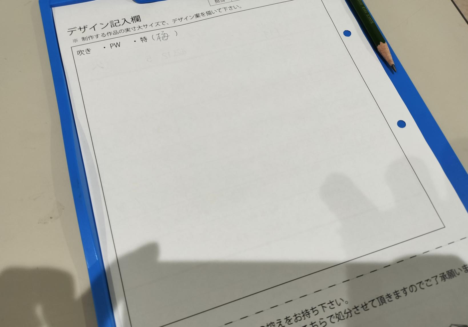 デザインシートに模様(水玉、流れ、らせん、マーブルなど)も描き入れて、イメージするものを絵にしてみます。できるだけ希望に沿ったものが作れるようになっています。