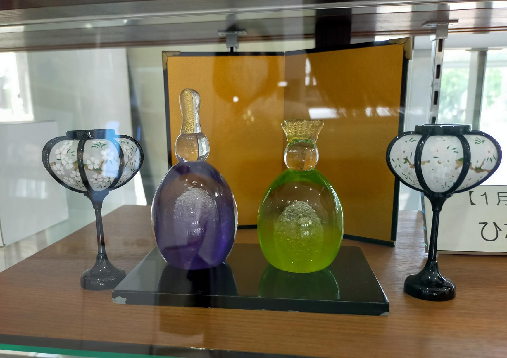 工房ではグラス以外にも季節のオーナメントやぐい呑みなども作製できます。ガラスを使ったアクセサリーや玩具などもあるので子供も楽しめますよ。