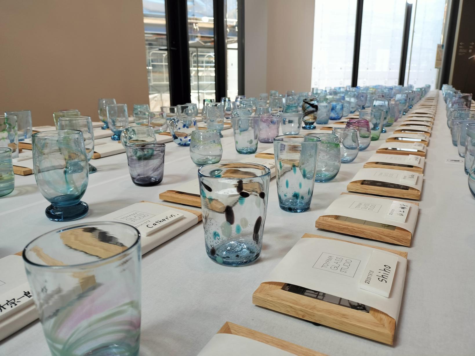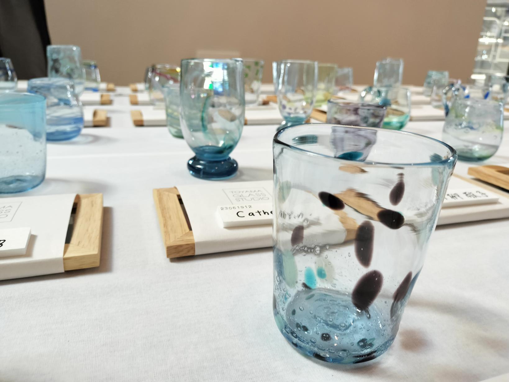 今回は富山ガラス工房で、リサイクルガラス「リメルト・ブルー」を使用した吹きガラス体験でグラスを製作しました。世界にただひとつ、自分だけのオリジナルグラスが作れます!