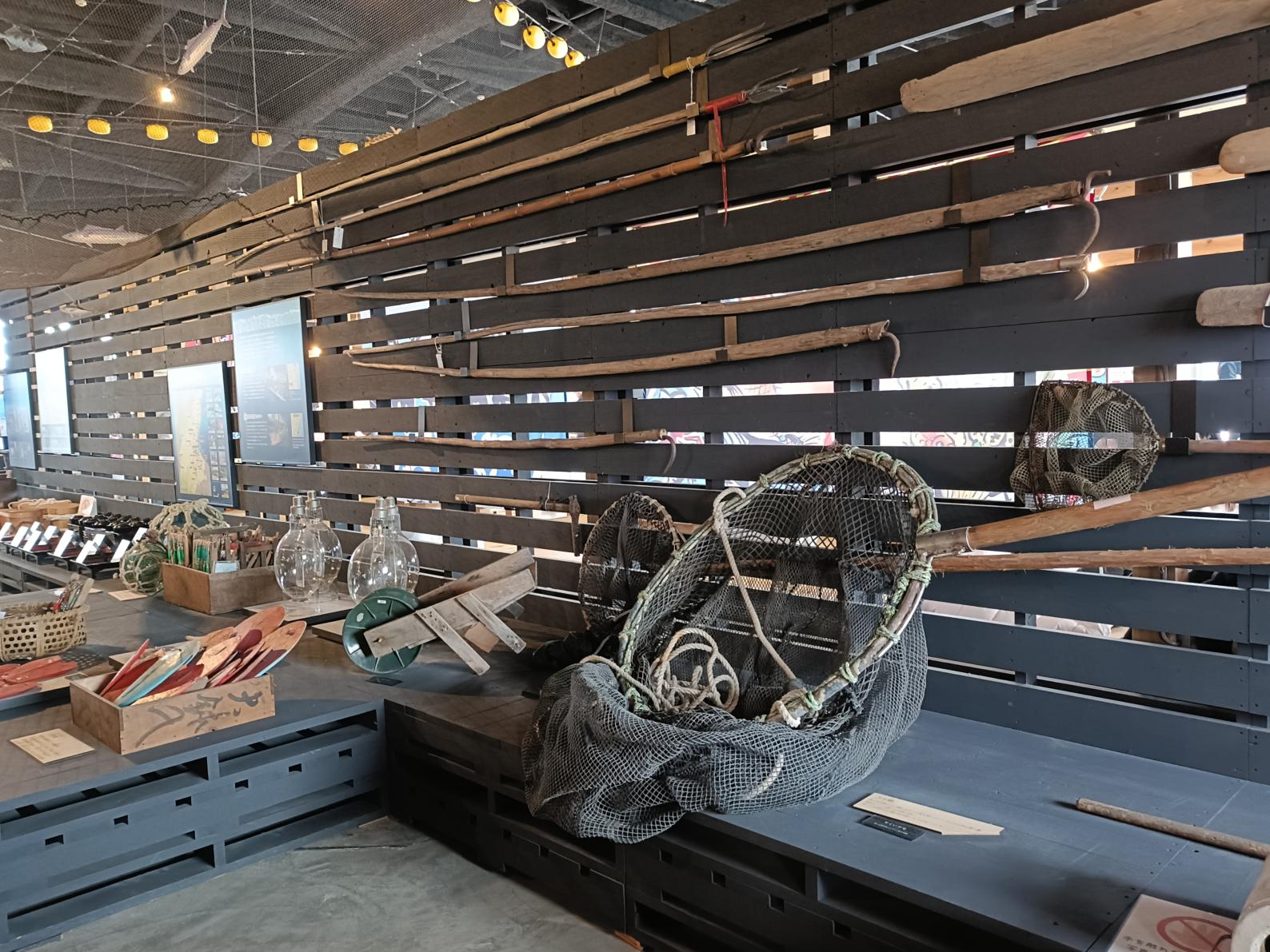 館内に展示されている全長70mの越中式定置網は、迫力ある漁業の姿を間近に感じられます。また、木造の船や大漁旗、漁具なども展示されています。漁業についての映像も大きなスクリーンで上映されているので、座って観るだけでも楽しめます。
