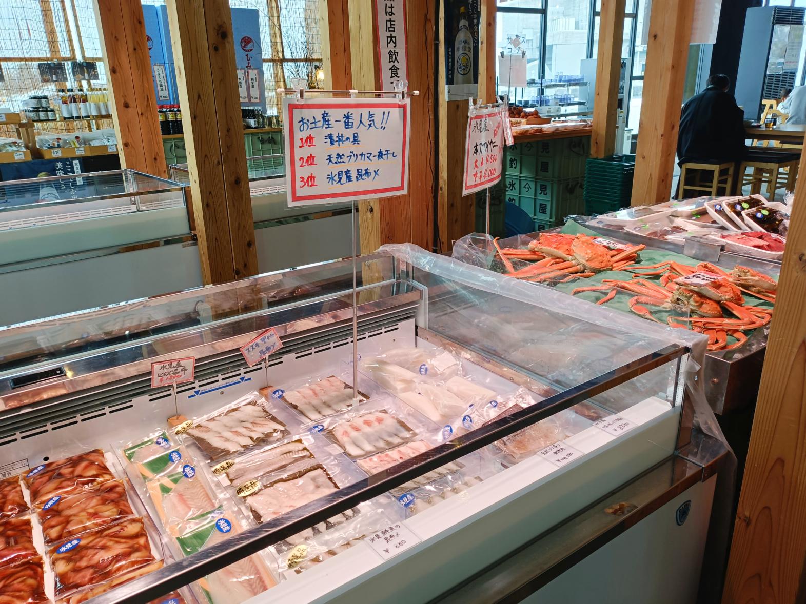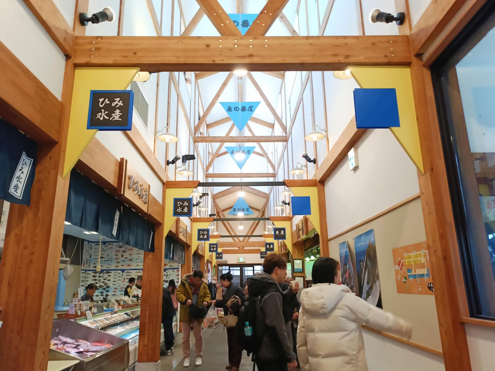 また、館内には「氷見魚市場食堂」の姉妹店、「ひみ岸壁市場」が併設されています。食事はもちろん、お土産コーナーでは氷見ならではの特産品を購入することができ、訪れた思い出を持ち帰ることができますよ。