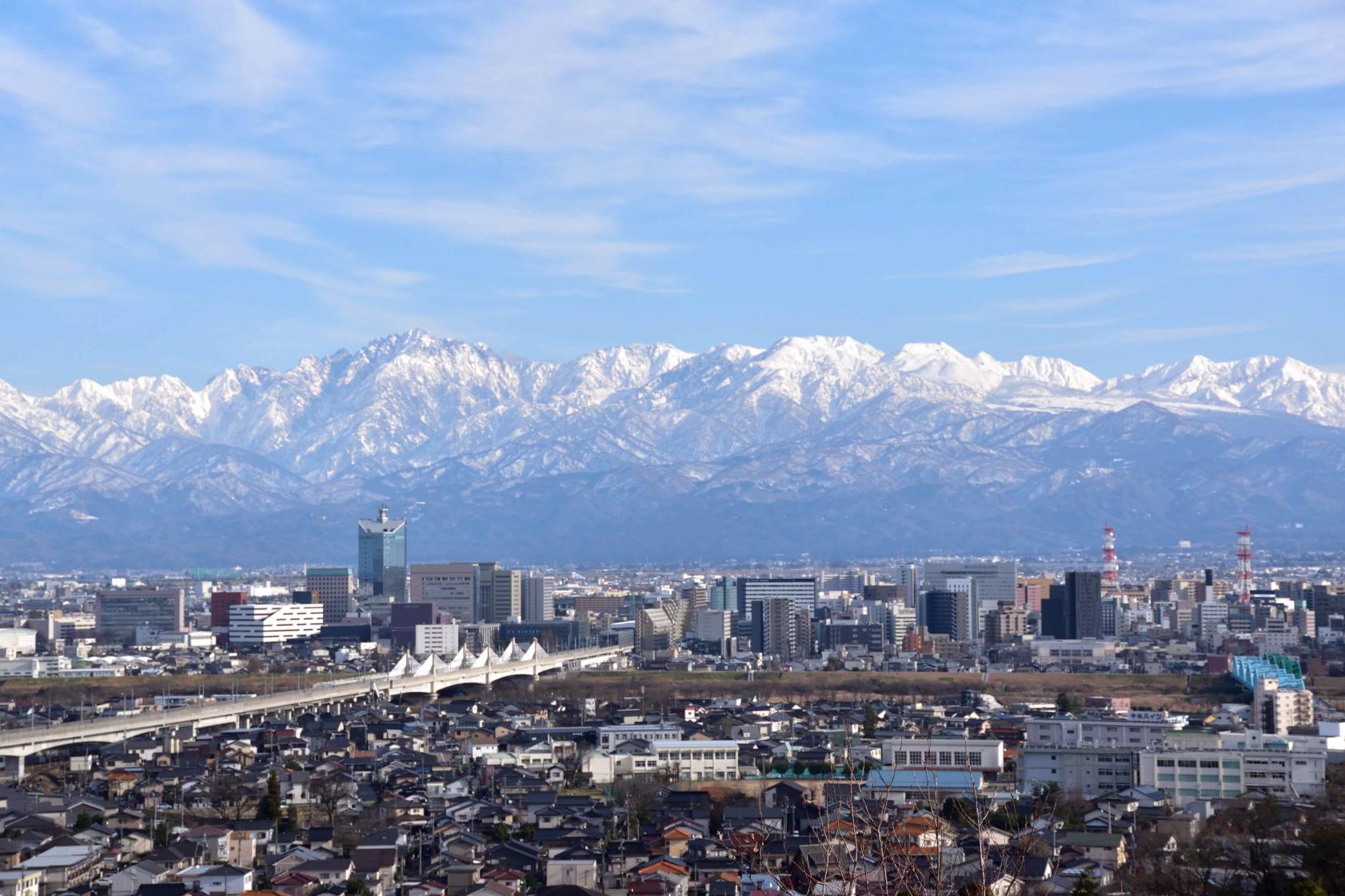 神社のすぐそばには、立山連峰が一望できる「呉羽山(くれはやま)公園展望台」や「呉羽丘陵フットパス連絡橋」があります。是非立ち寄ってくださいね。