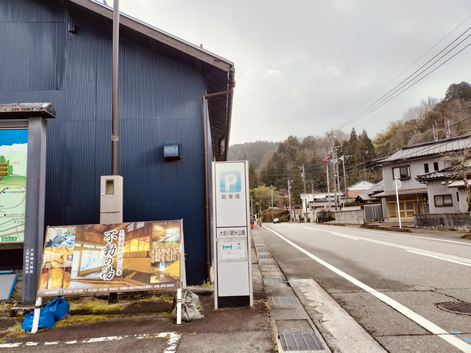 上市駅からは約6.9km。バスで約23分(町営バスは200円)、タクシーで約15分です(3500円程度)。大岩山日石寺の手前左側に駐車場があります。日石寺に参拝する場合は、お寺の駐車場に停められます。