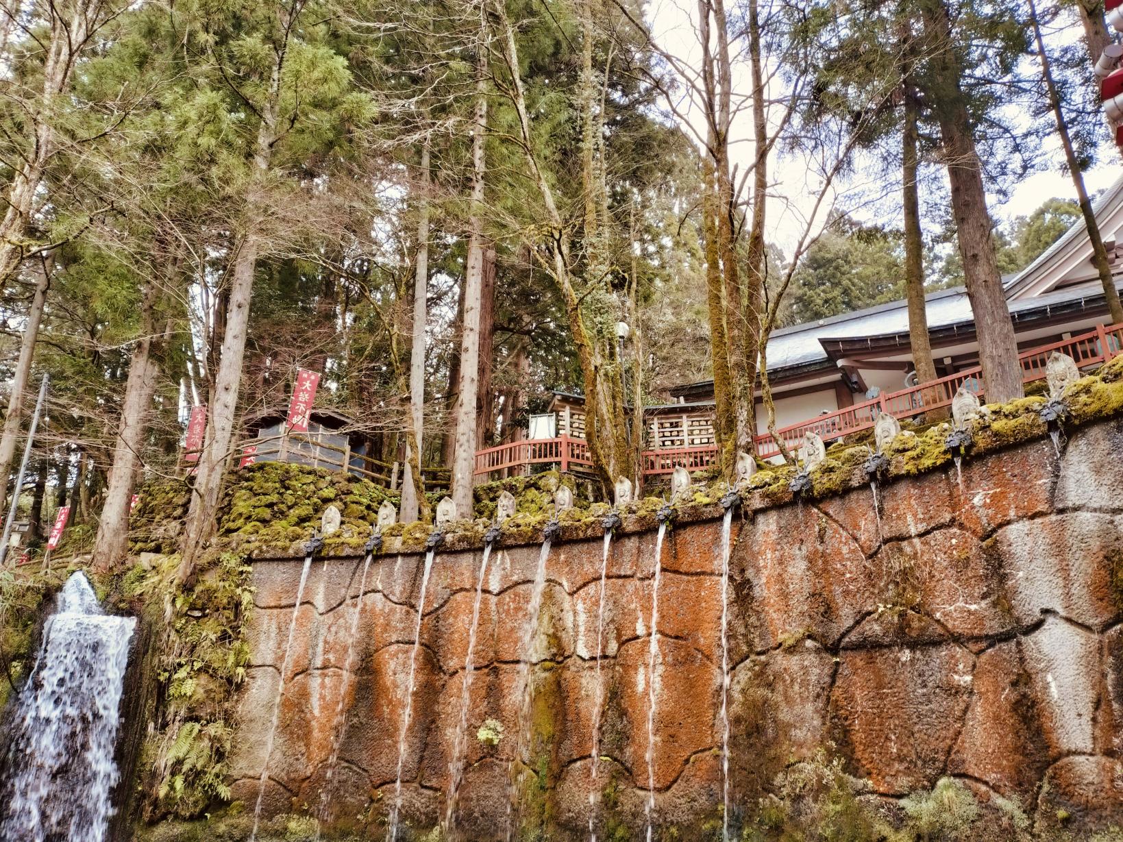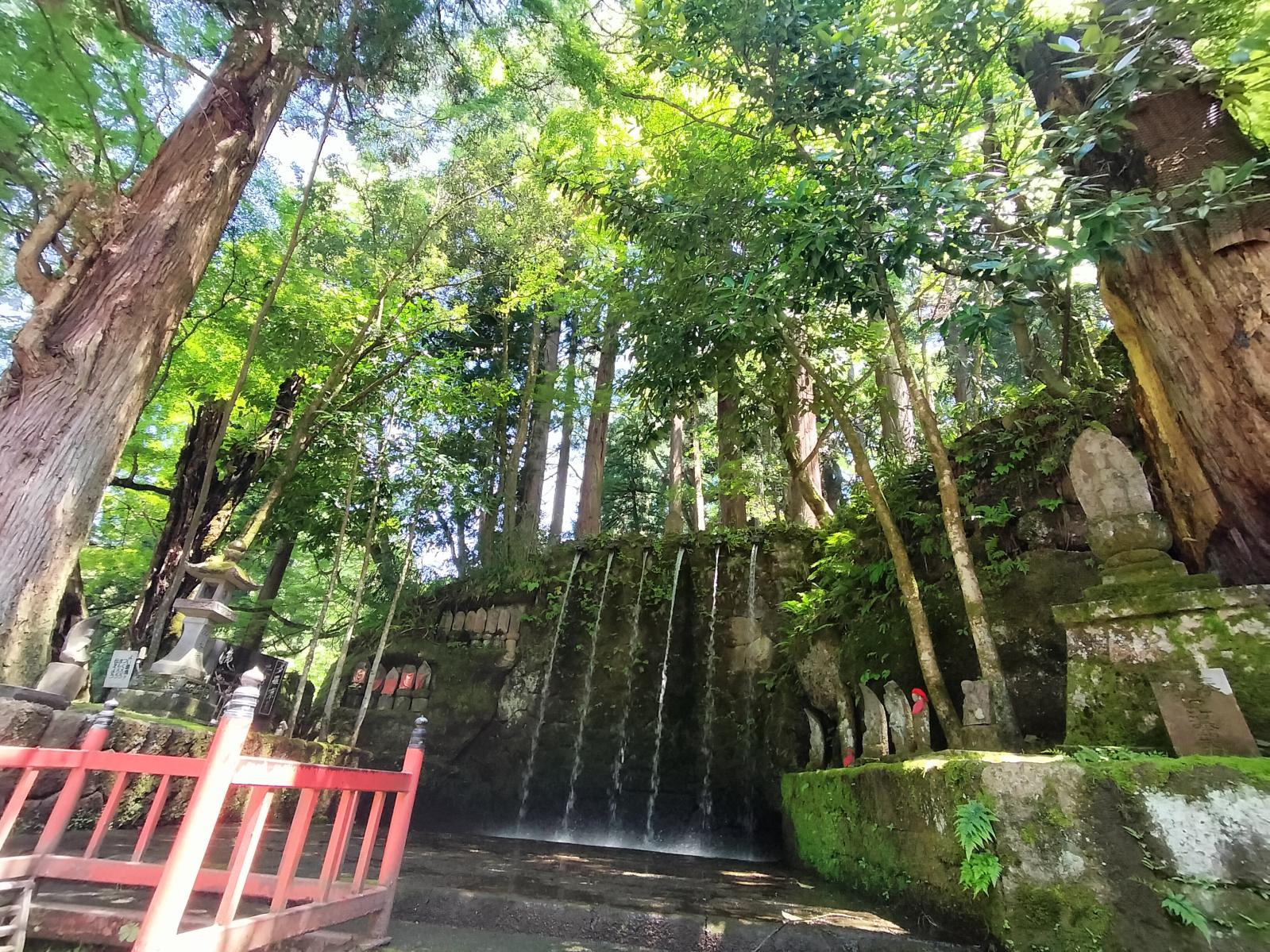 「六本滝」は、滝行修行が行われる滝で、見ているだけでも涼しげ。滝の横にある「藤水」は、とやまの名水に選ばれている湧水です。古くから目病に効くと言われている美味しい水を、空の水筒に入れてお土産にも是非。ものすごい勢いで出ているので、秒でいっぱいになります!