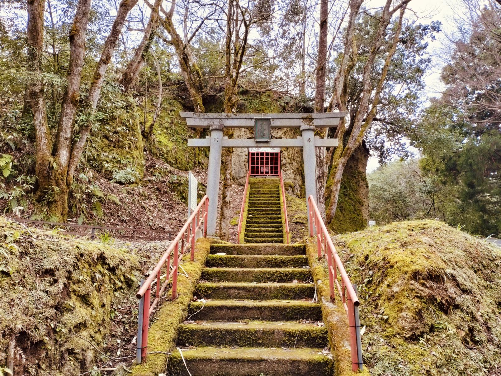 ここは境内の一部。岩に囲まれた「奥の院」は磨崖仏(まがいぶつ)を彫ったと言われる行基菩薩がお祀りされています。