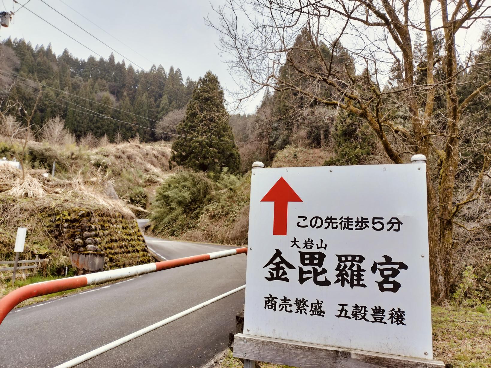 日石寺の駐車場から5分程道路を上がっていくとあるのが「金比羅宮」。船の安全を祈願する神社として有名な神社がなぜこんな山に?と不思議に思うかもなのですが、かつてはここから富山湾が見えたそうですよ。
