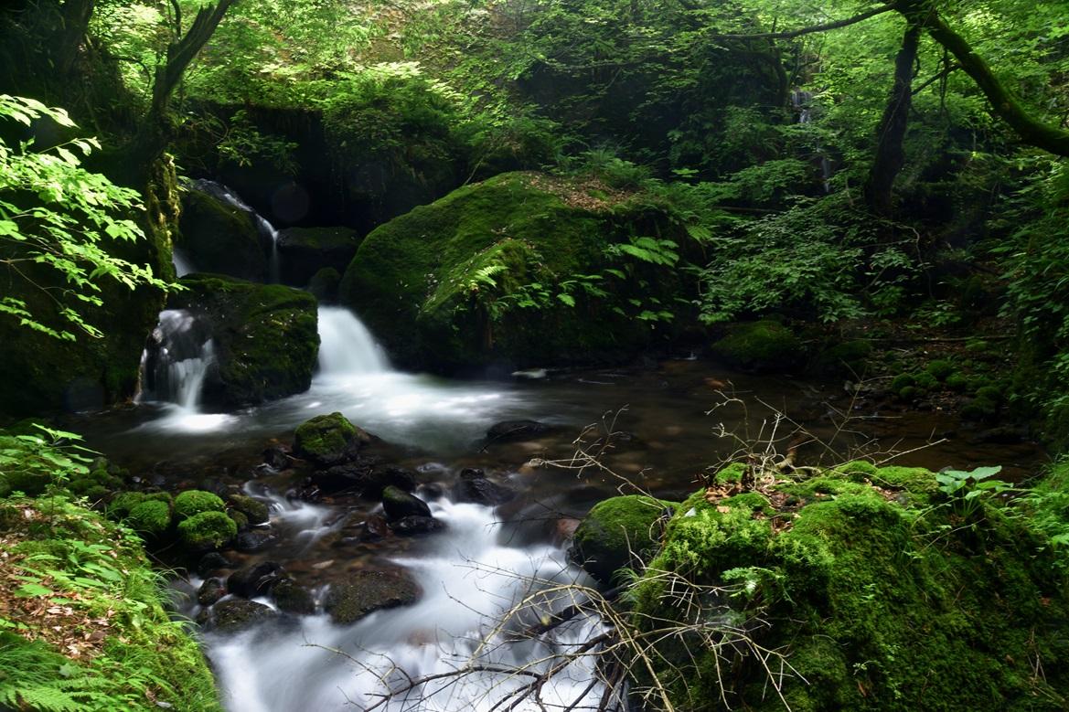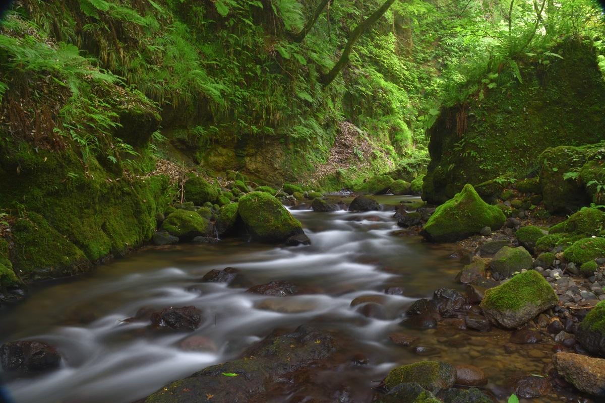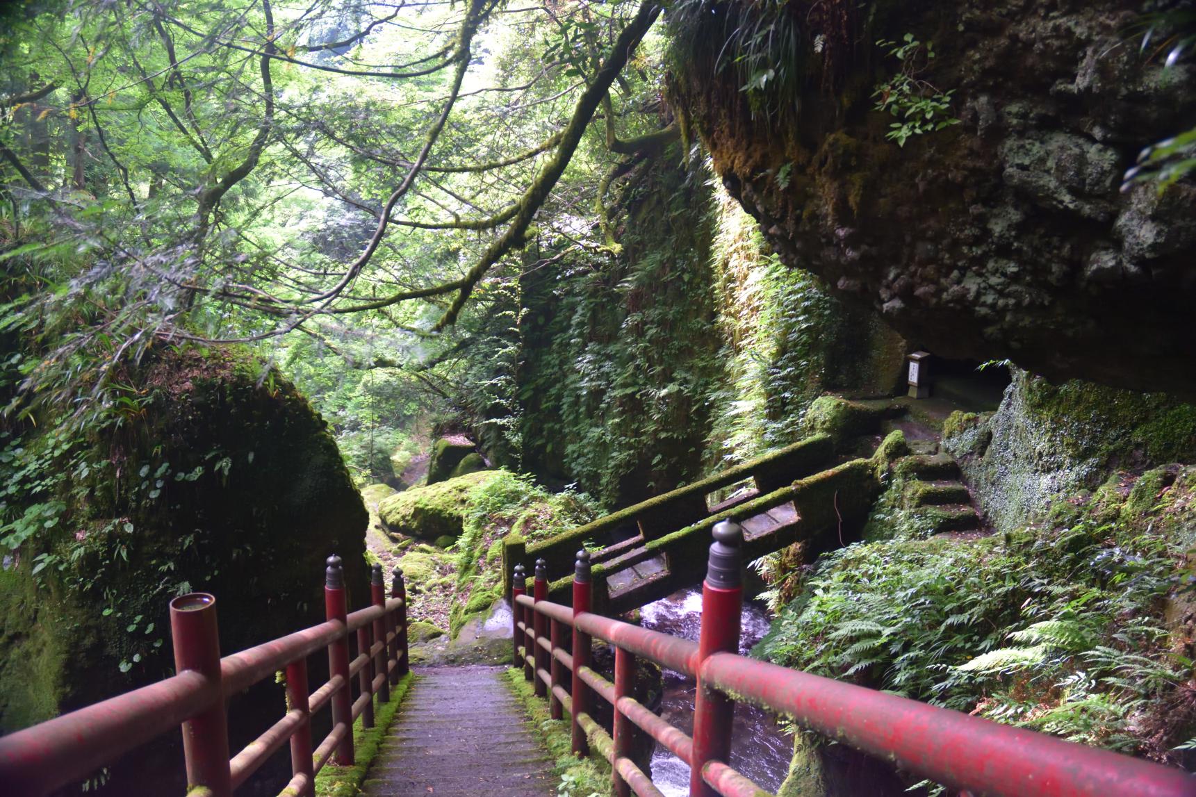 苔むした巨石と草木が創り出す独特の雰囲気は神秘的。マイナスイオンが満ちていてひんやりとしているので、暑い夏におすすめです。