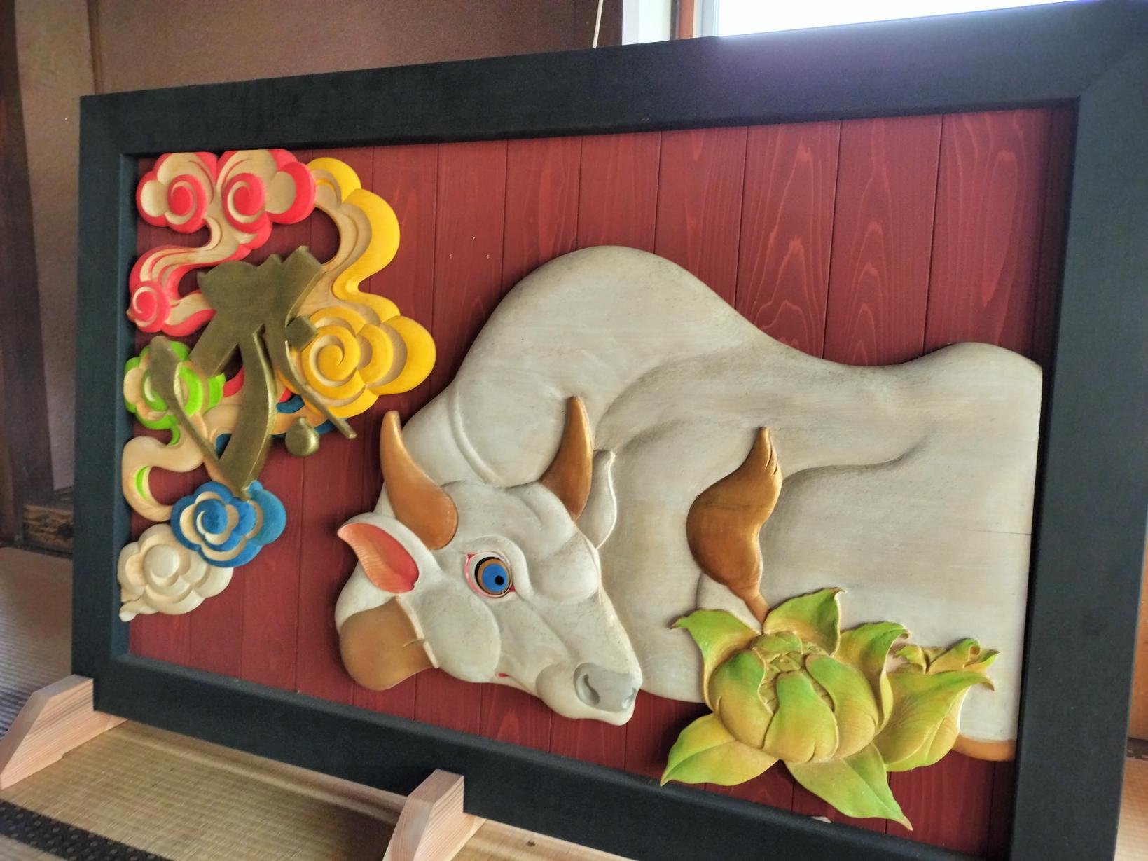 「鐘撞堂(かねつきどう)」には干支の絵馬が掛けられています。これは参道にあるカフェ「まめぼう豆(ず)」の二階に工房を構える仏師の住吉太雲氏が製作した絵馬。木を彫って彩色したもので、是非みてほしい芸術です!