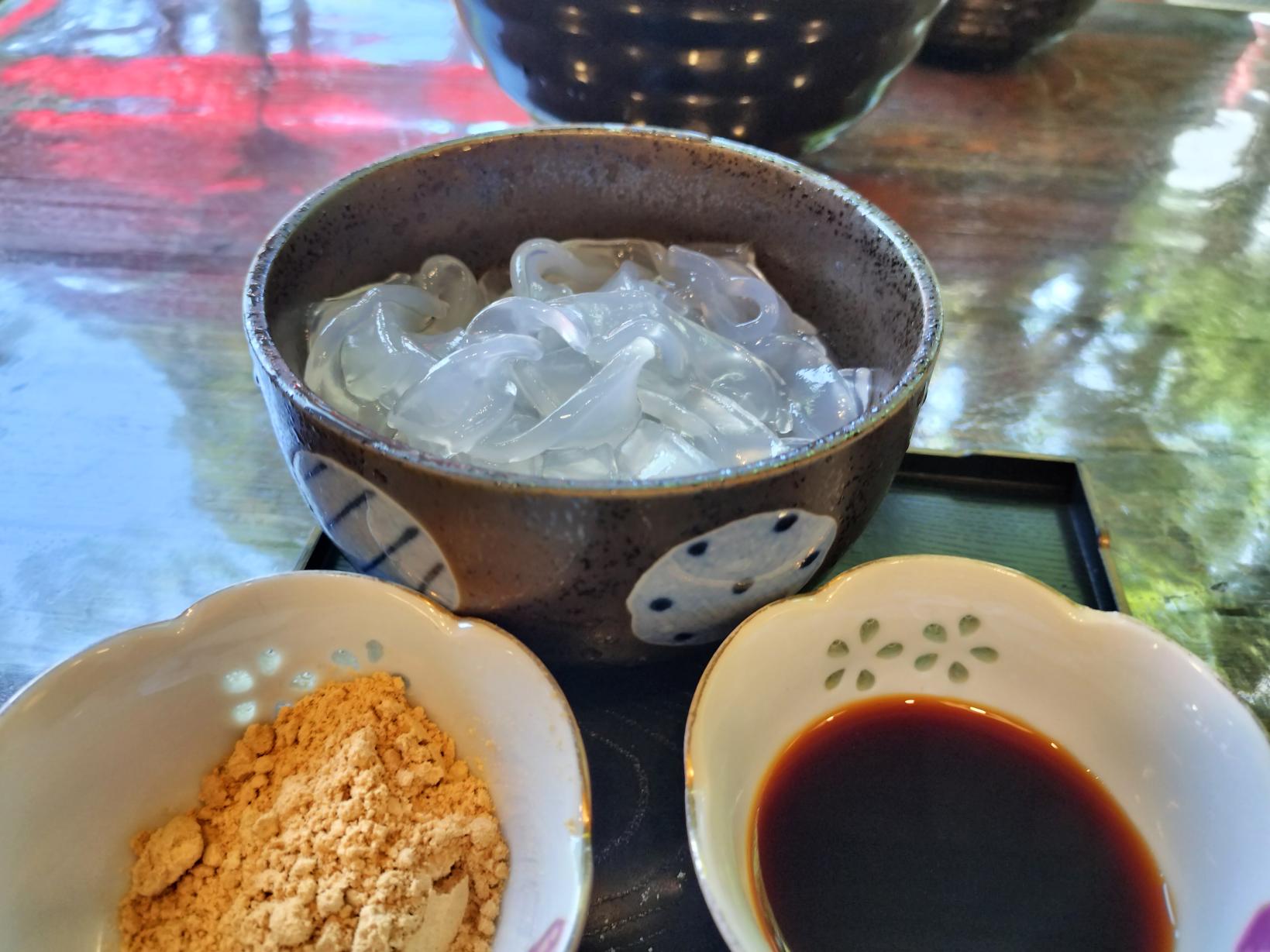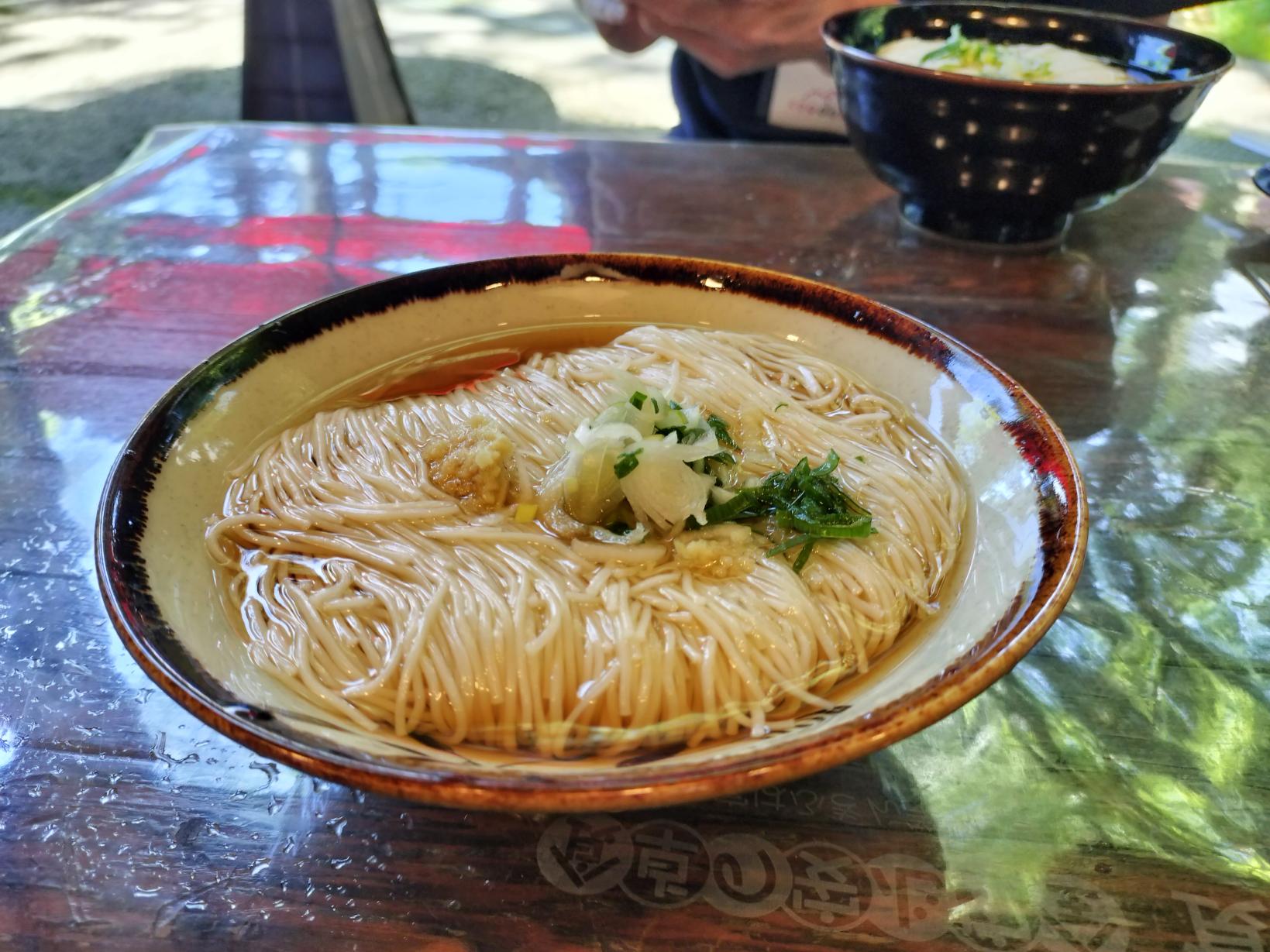 日石寺の門前で「そうめん」が食べられるのは現在3軒。一番古くからあるのが、「大岩館」です。ほっとする懐かしい店内では、「そうめん」や「地元の食材」を食べることがてきます。特に春は地元で採れる新鮮な山菜を楽しむことができます。是非、旬を味わってください。熟成されたそうめんを大岩の水で冷やした、するするっと喉を通る優しい味の「そうめん」は、夏に大人気です。