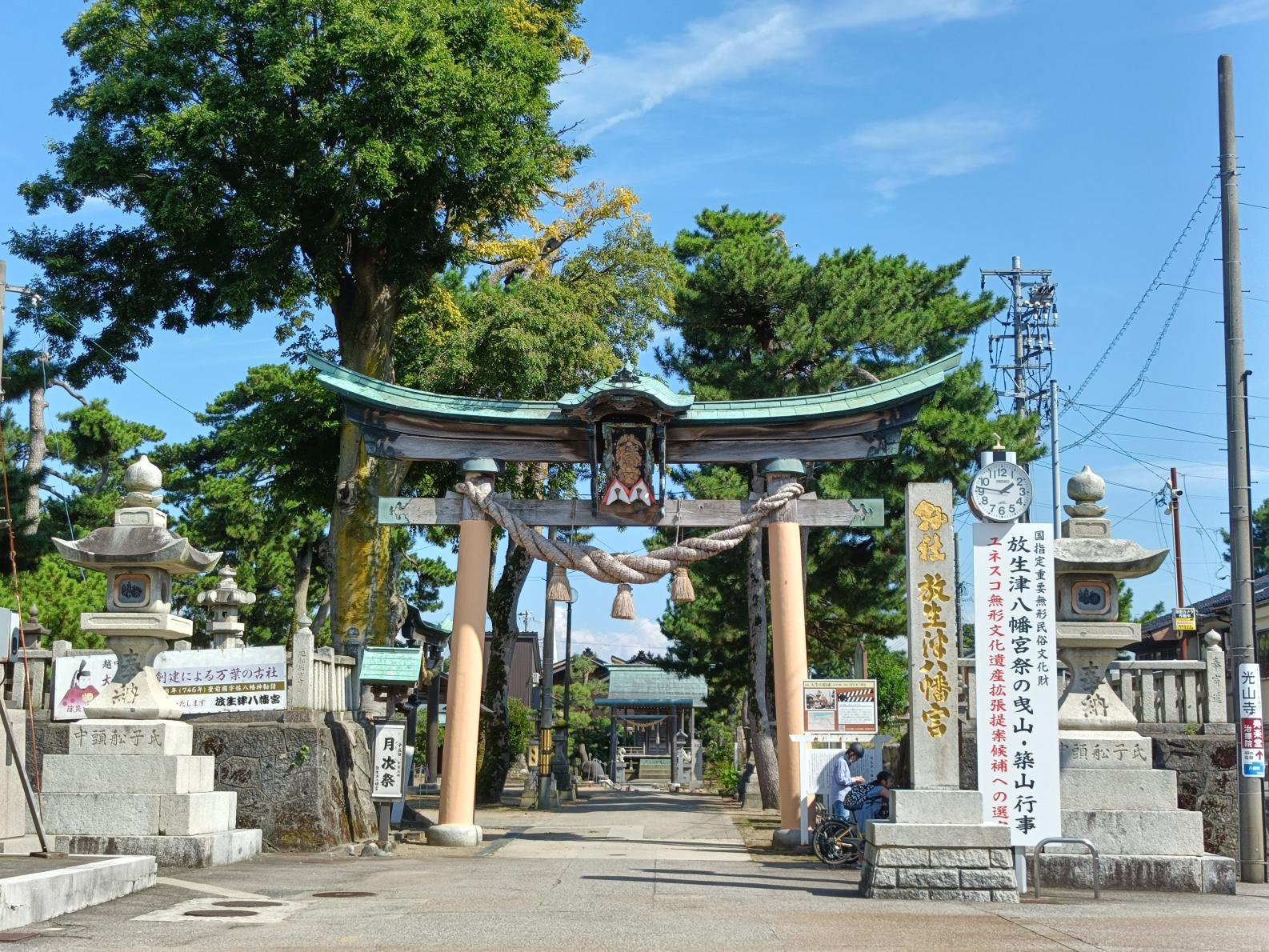 放生津(ほうじょうづ)八幡宮は、新湊(しんみなと)市のおすすめ観光スポットである内川エリア内に鎮座しています。万葉集の歌人として有名な「大伴家持」が、越中国府赴任中に創建したのがはじまりです。なんと今でも大伴家持の子孫が代々お仕えされています。