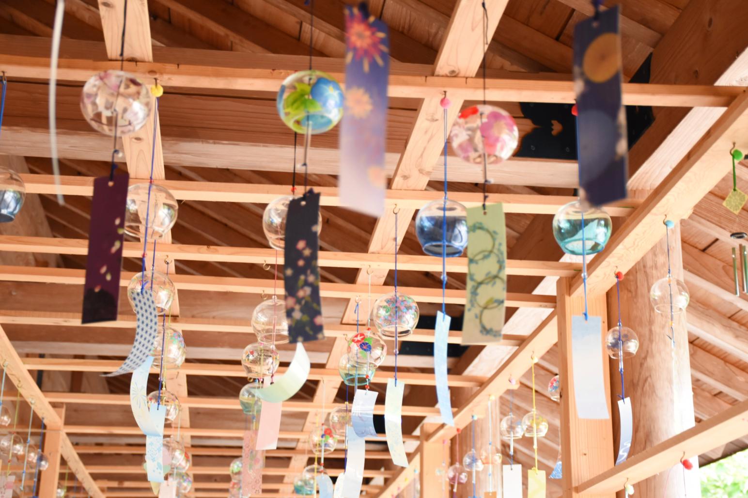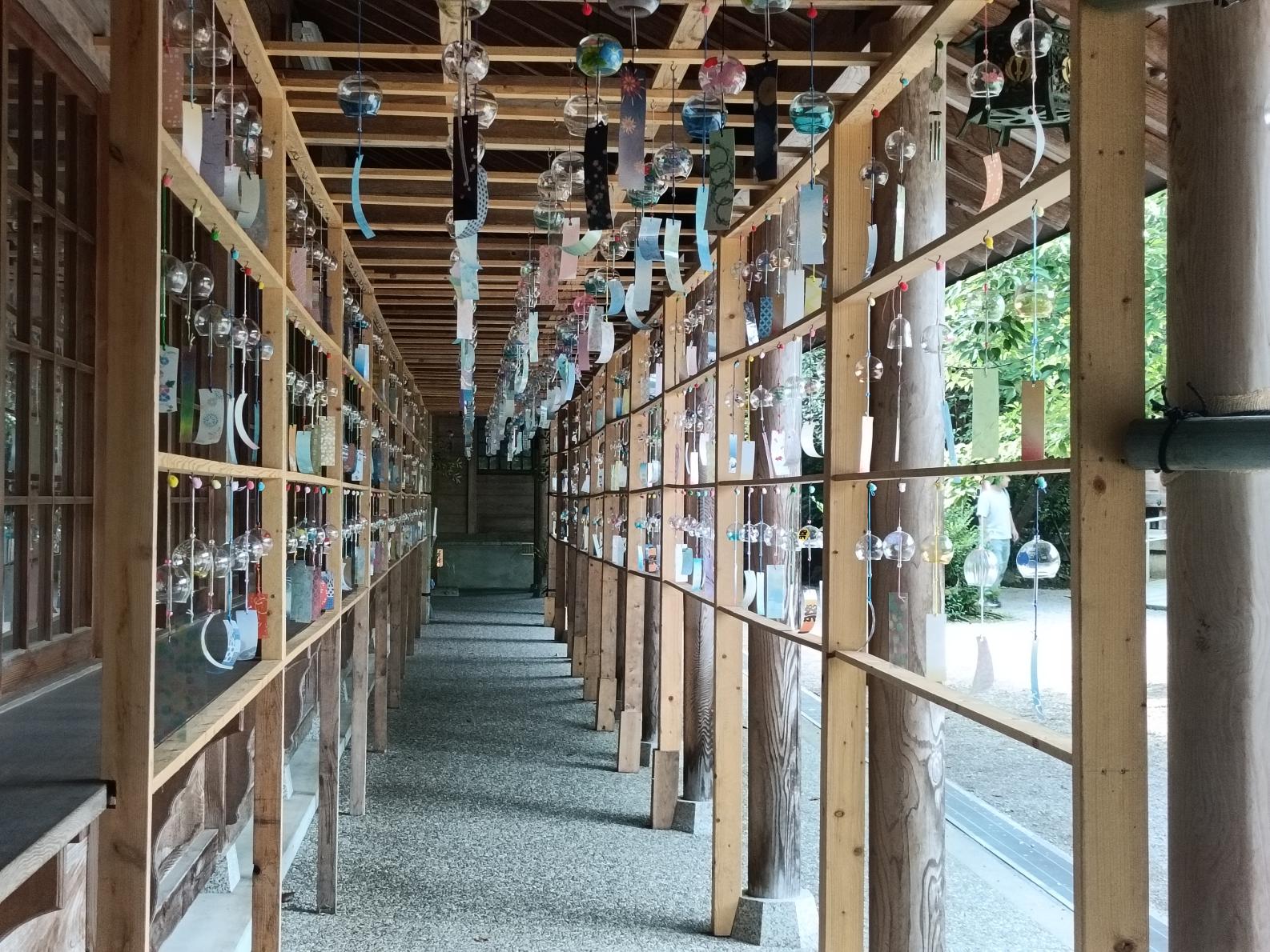 櫛田神社では、毎年7月に風鈴トンネルができます。境内の至る所にも風鈴が飾られ、とても綺麗です。風が吹くと涼やかな音を奏でてくれ、とても涼しげです。