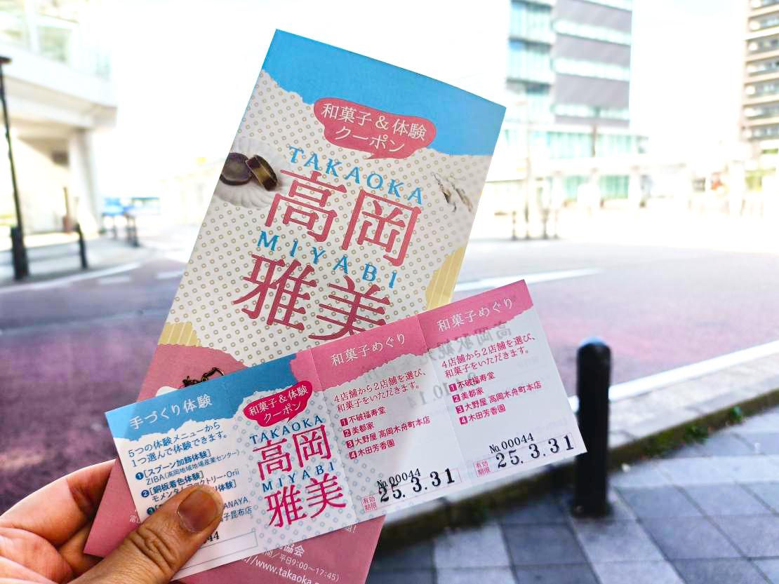 「高岡雅美(たかおかみやび)」は、高岡ならではの伝統と和菓子を気軽に体験できるクーポンです。クーポンを使いながら高岡城下を歩くと、観光もまるっと楽しめます。