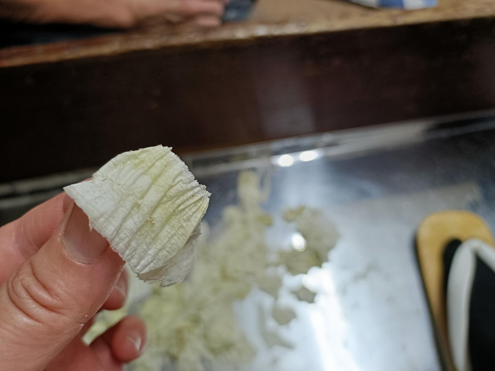 体験は「おぼろ昆布」削りでした。「おぼろ昆布」とは簡単にいうと昆布の一番美味しいところを薄く削った昆布のことで、つまり削り昆布の高級品。平たく薄く削られたおぼろ昆布は、口の中に入れるとトロっととろけるのが特徴です。スーパーでは買うことのできない昆布なのです。