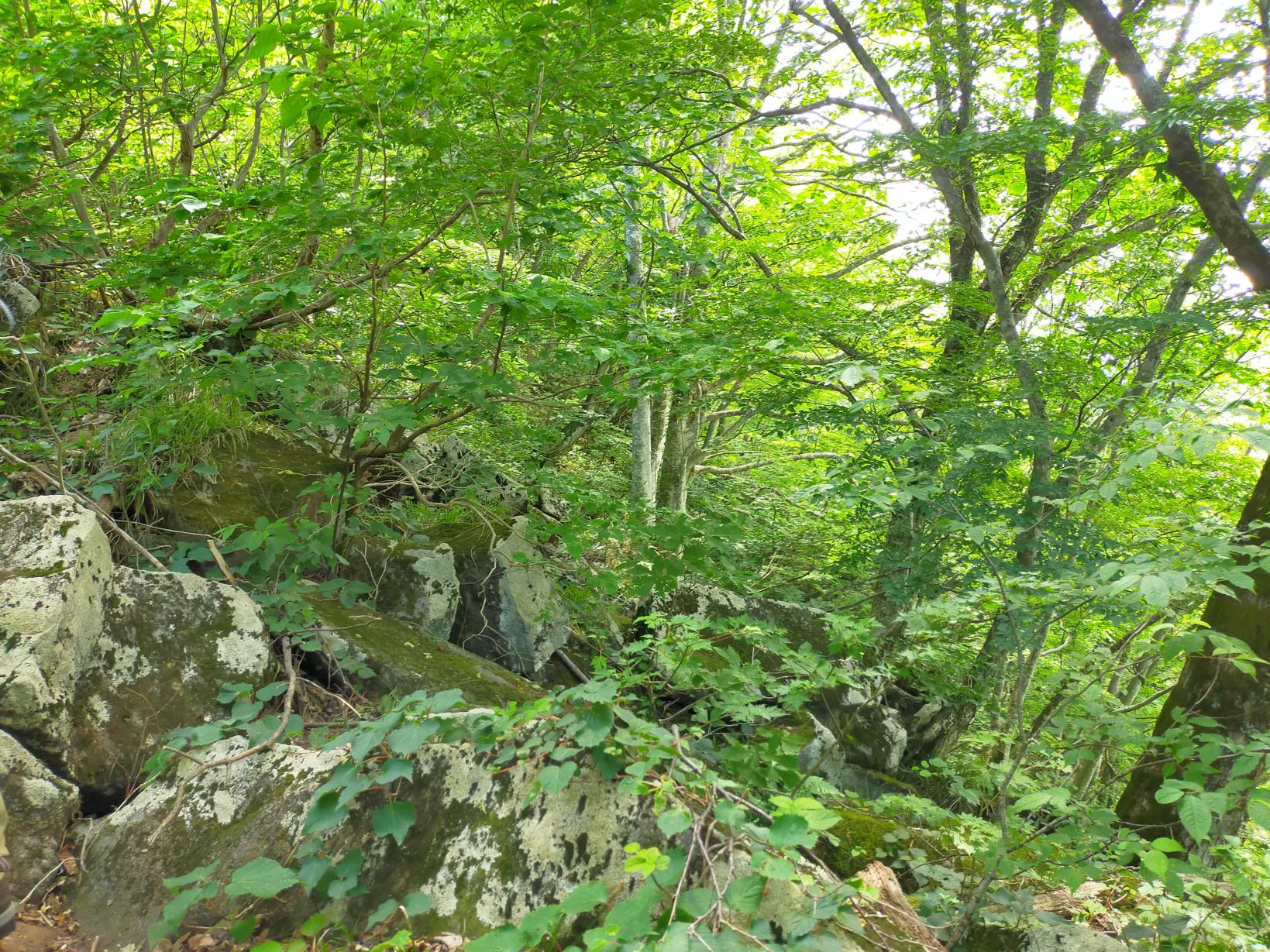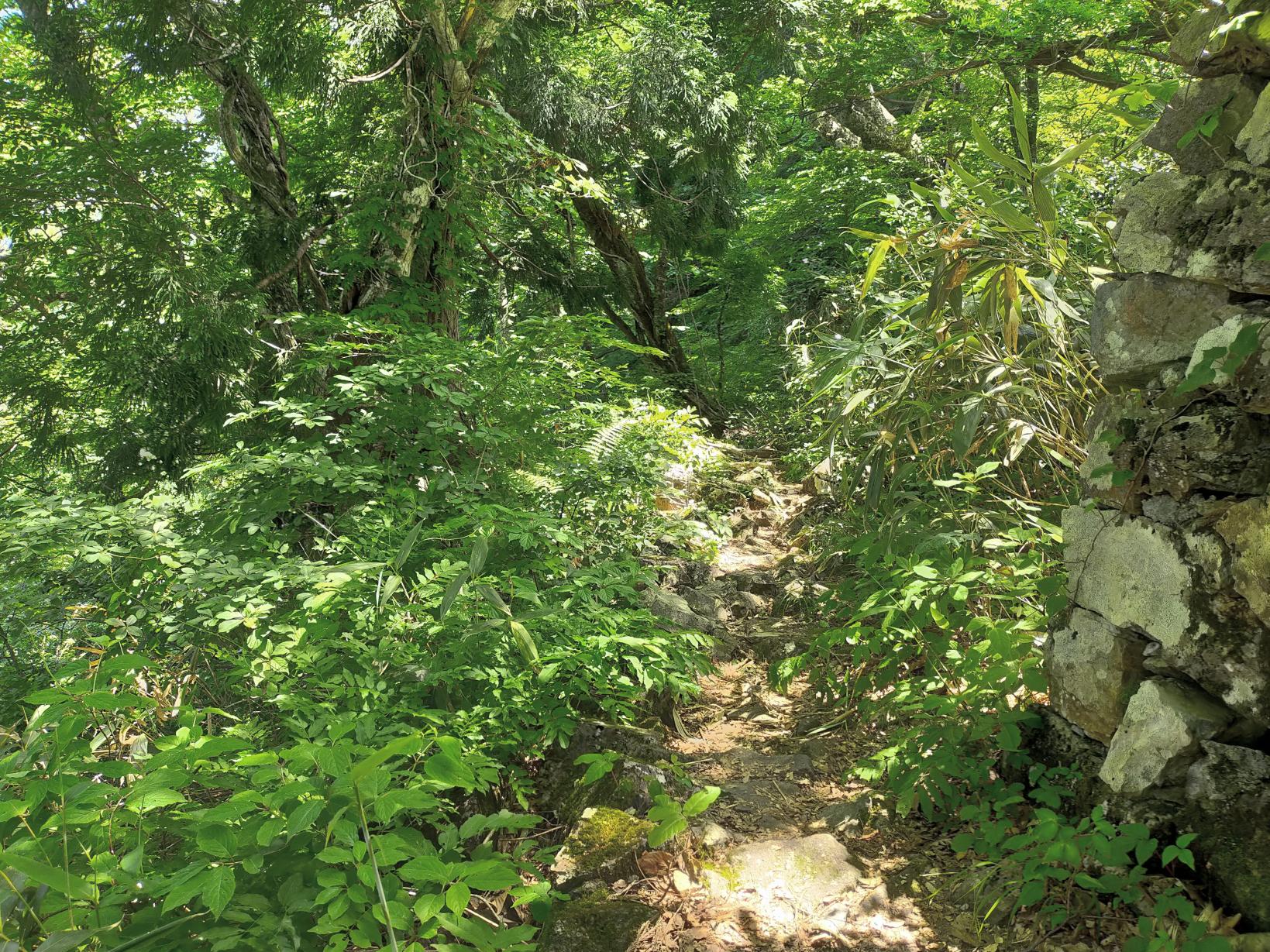 進行方向の左側は材木坂と言い、材木石がごろごろしています。歩くアルペンルートになっており、美女平まで歩くことができます(所要時間約2時間)。