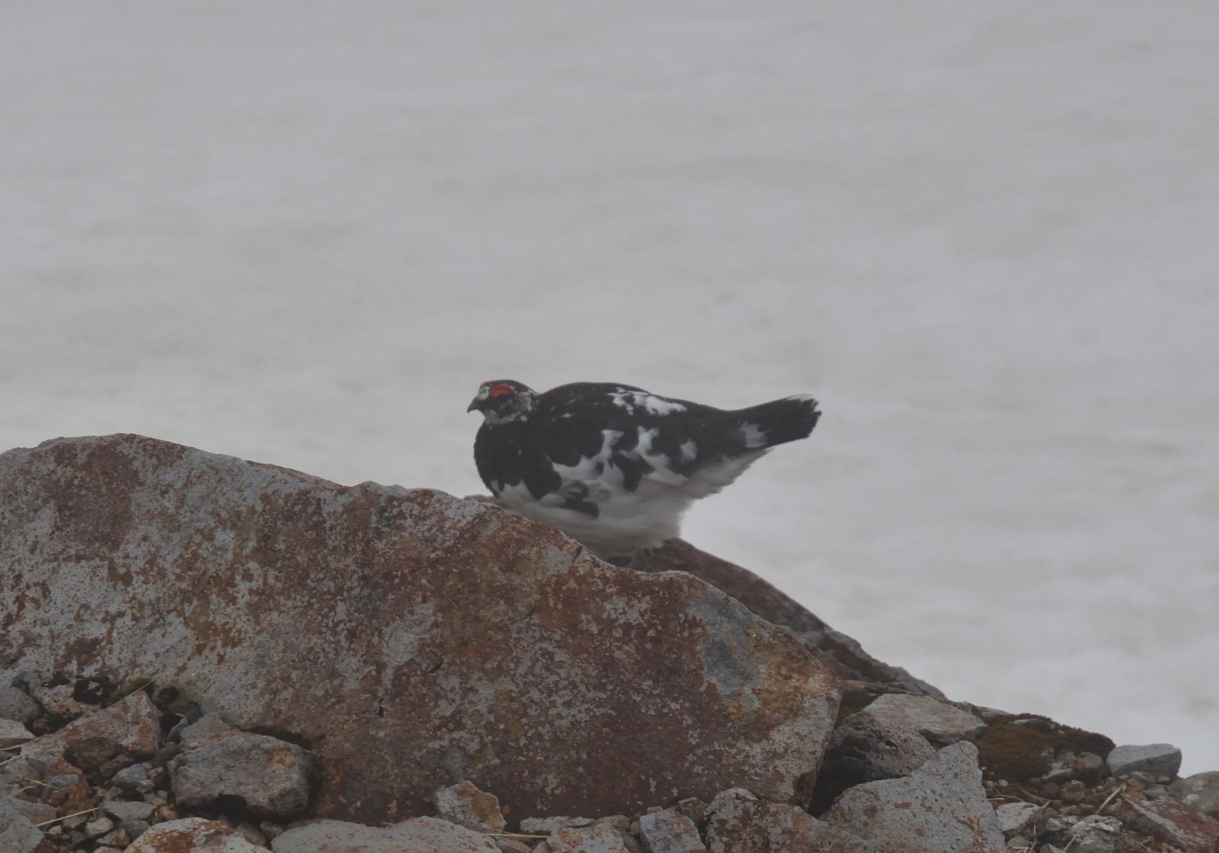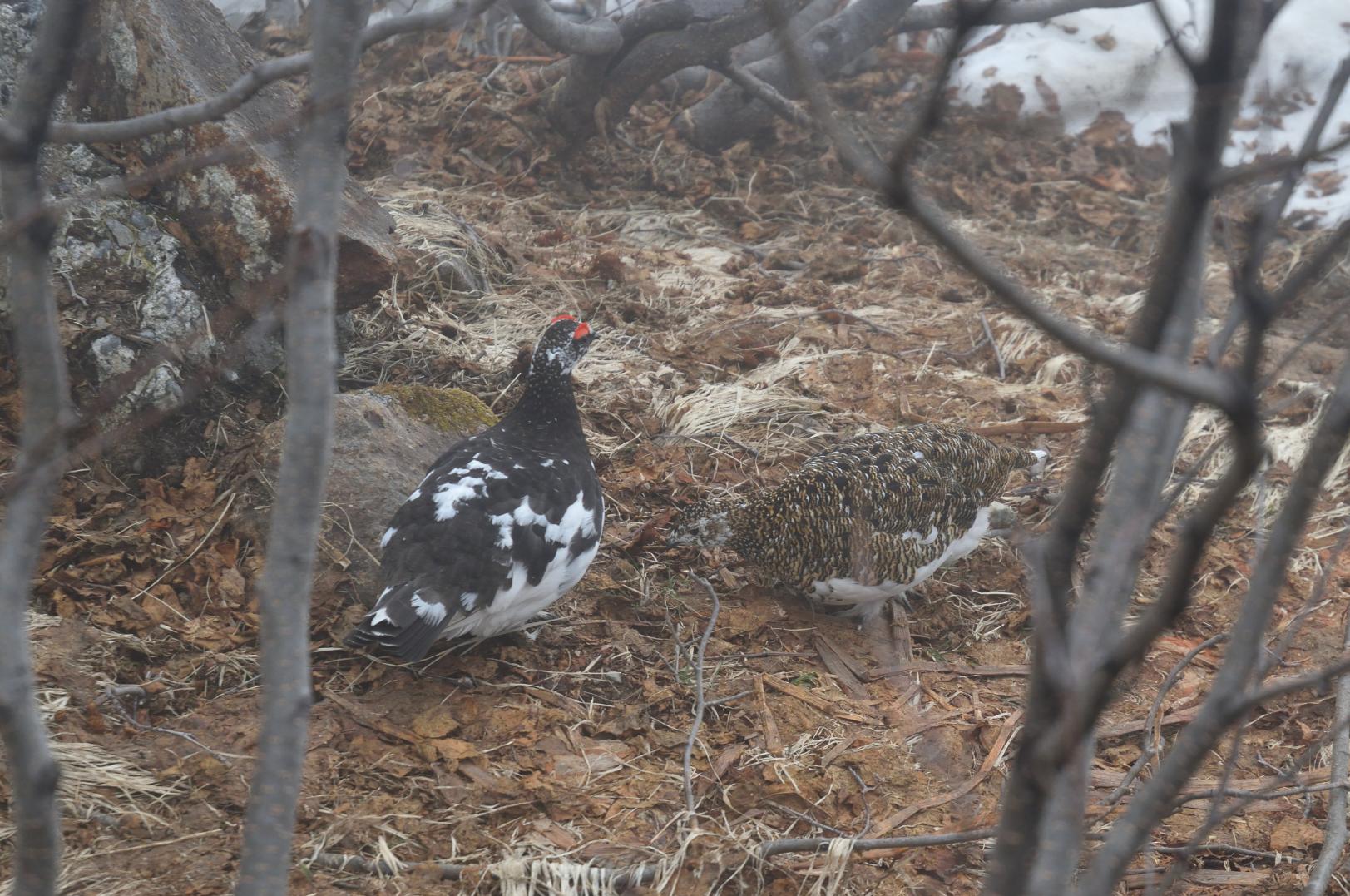 雷鳥は鳴くことがあります。可愛い姿からは想像もつかないカエルみたいな鳴き声なのですが、もし聞こえたら近くにいるかもしれませんよ~。