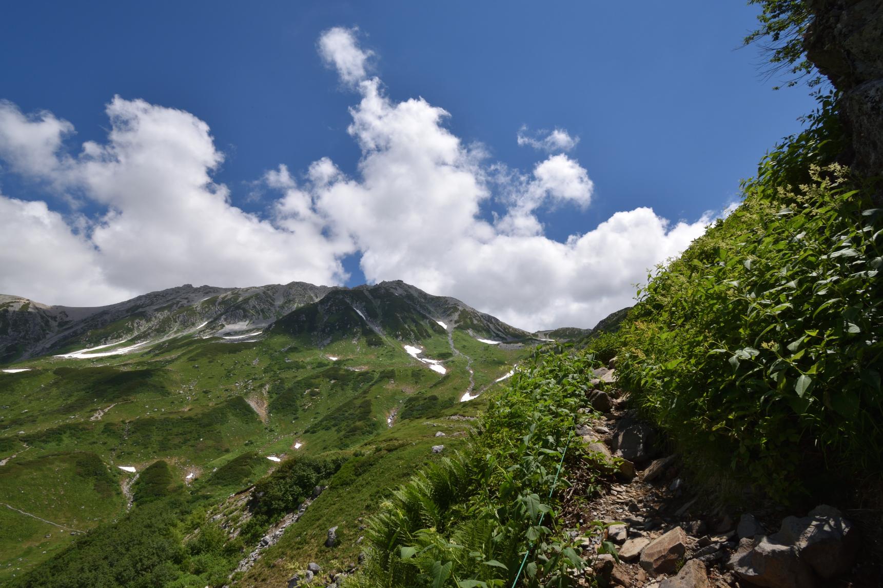賑やかな室堂平周辺と違ってとっても静かな場所で、私は好きです。岩の細い道なので気をつけていきましょう。ここからは正面に立山が見えます。