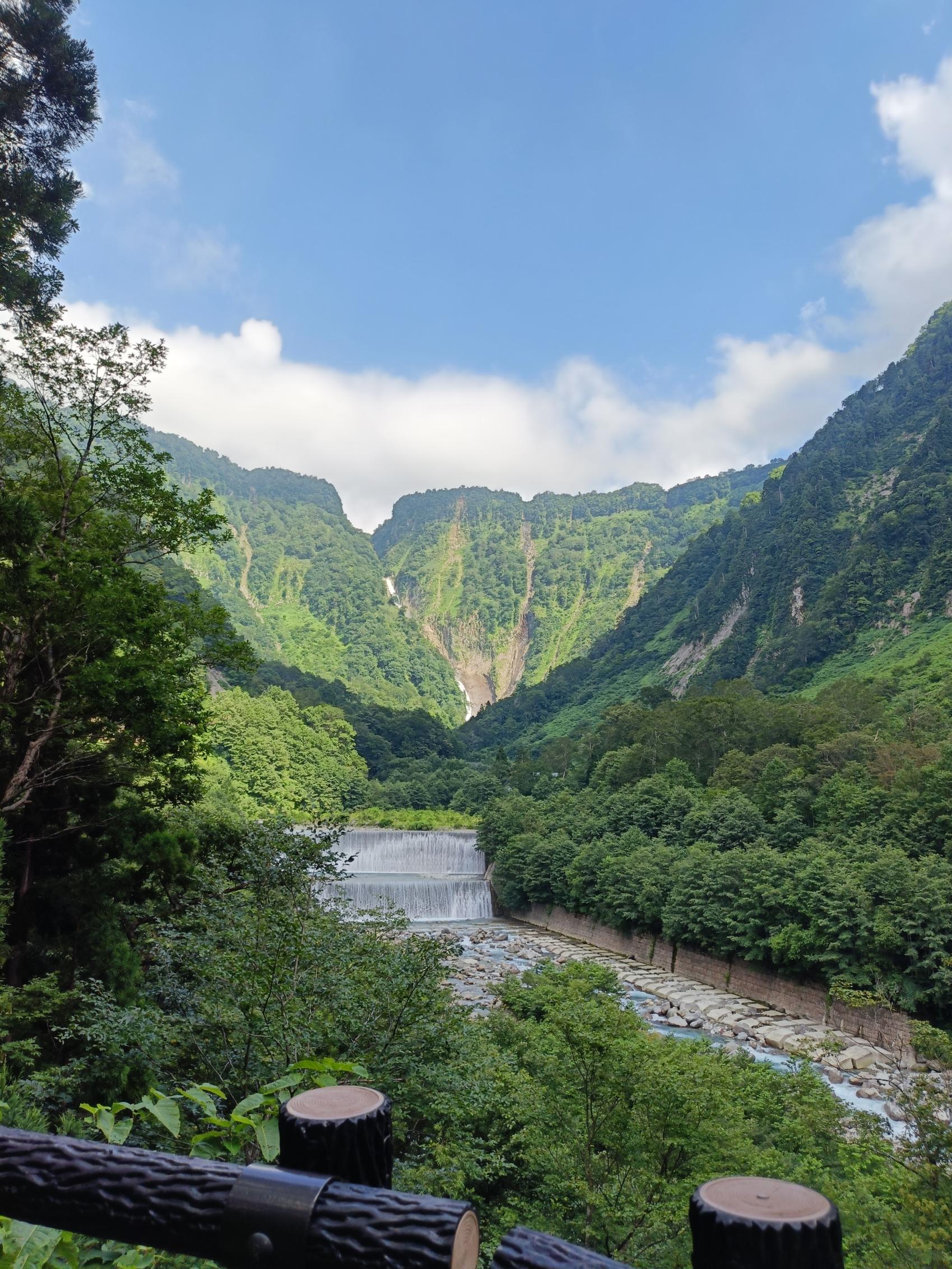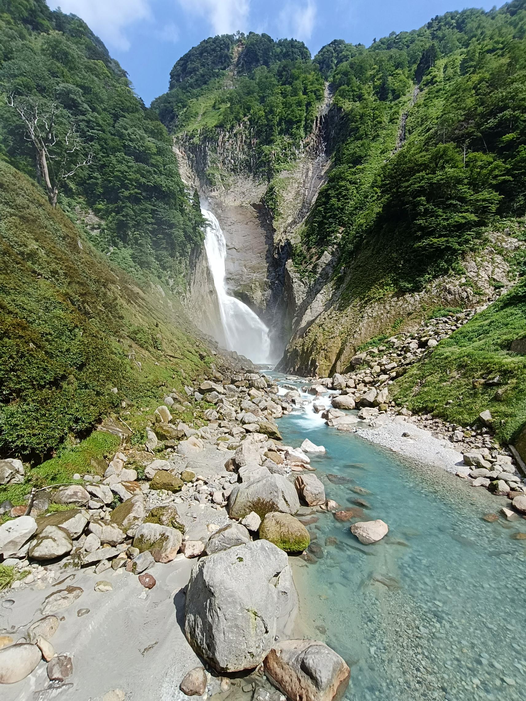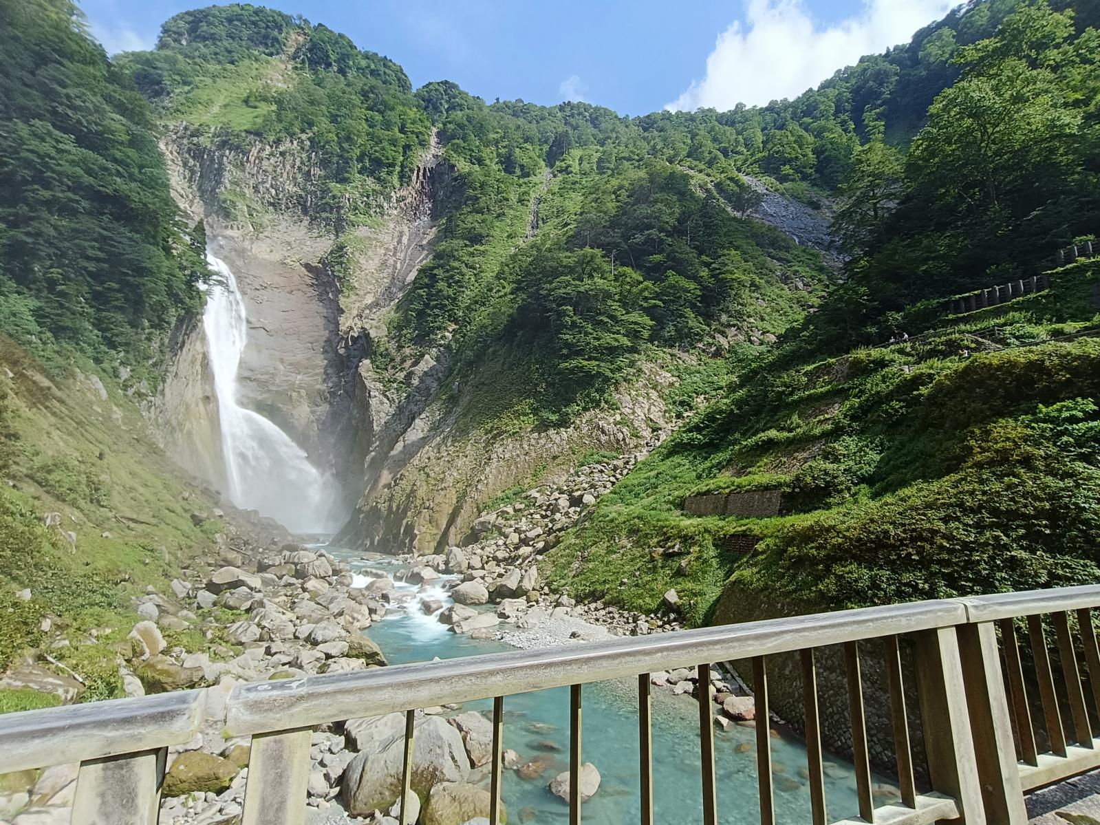 立山の雪解け水が流れ落ちる落差日本一の迫力に感動し、澄んだ水の色に癒されます。