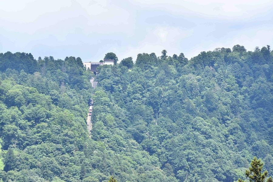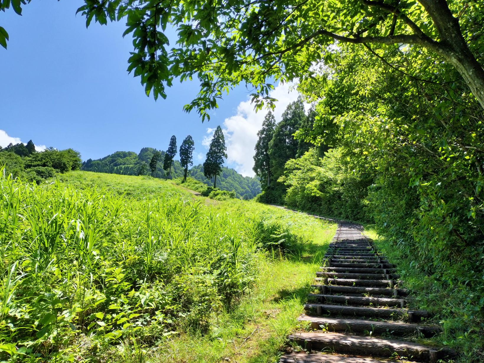 長い階段(160段)を登りきると「百間滑」はすぐそこです。階段上部で後ろを振り返ると気持ちの良い景色が広がります。