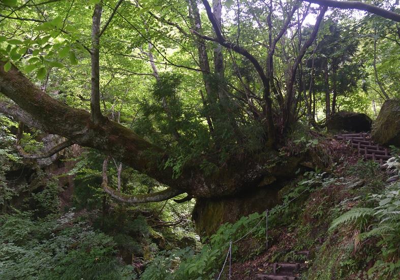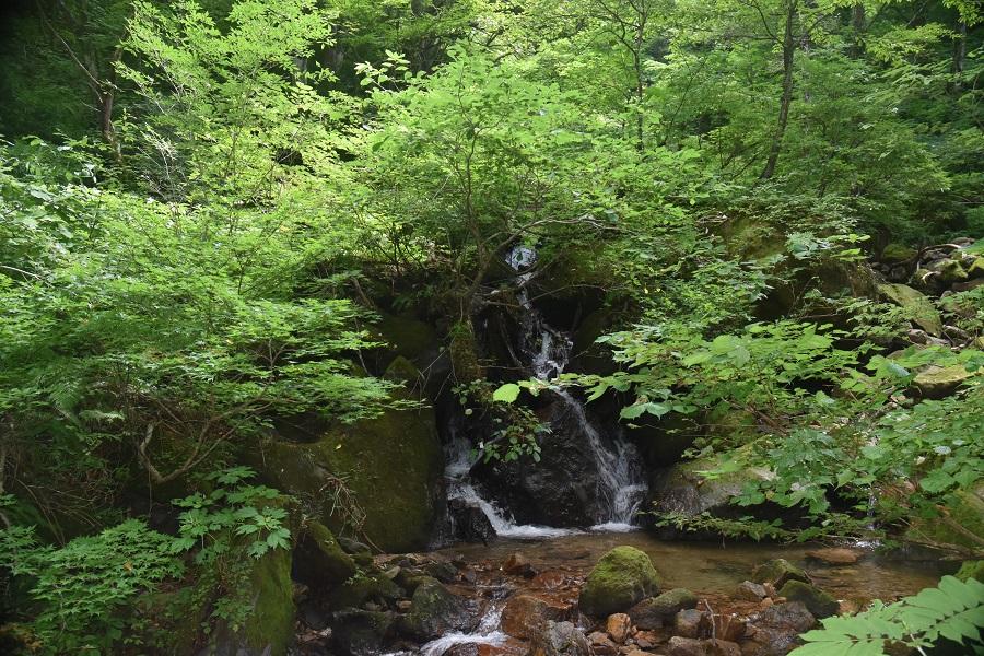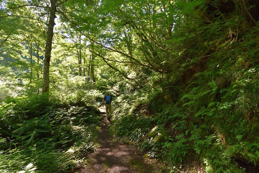 沢の横を通る遊歩道に沿って歩き、龍神の滝を目指します。百間滑からさらに20分程度歩きます。