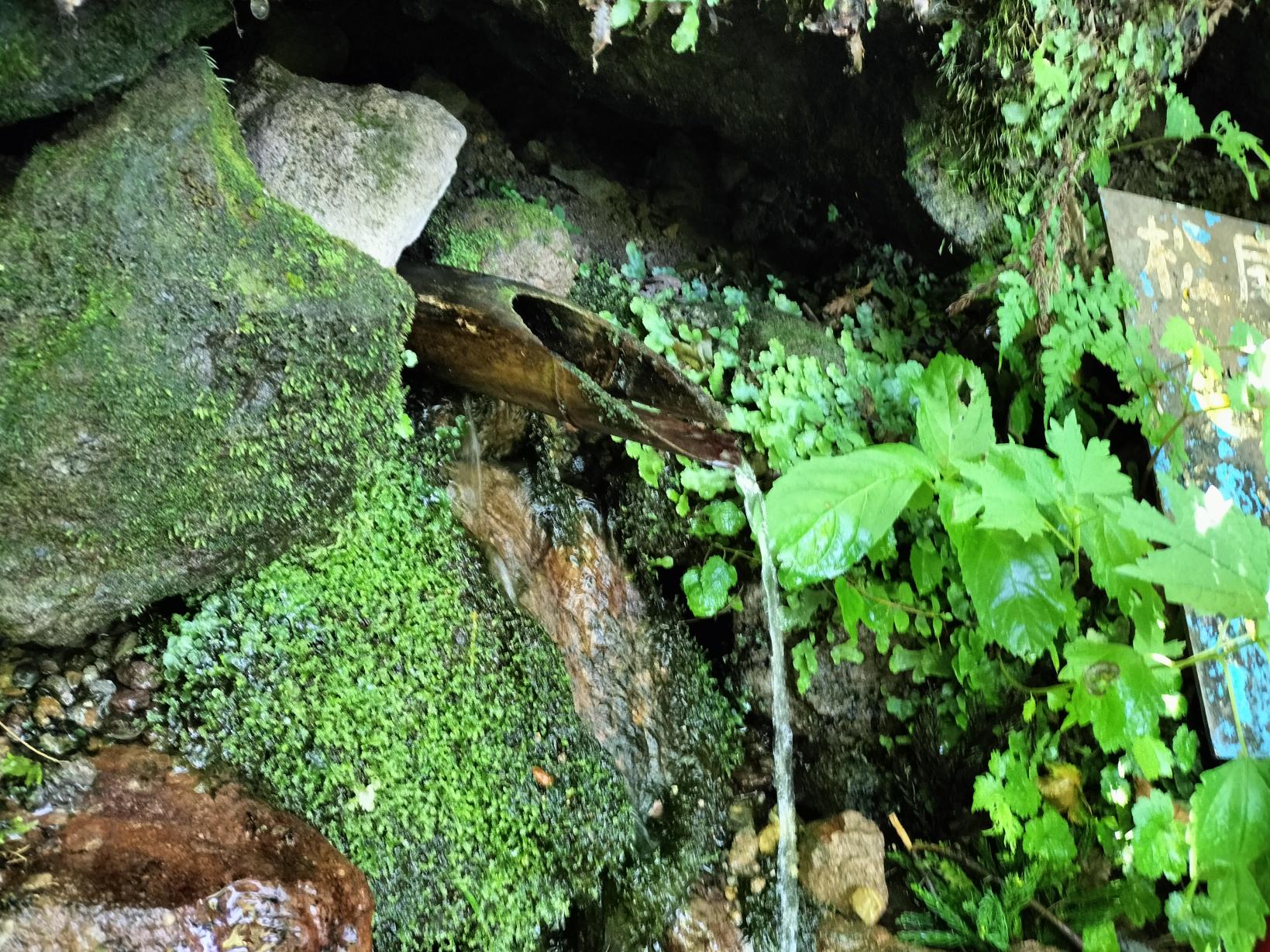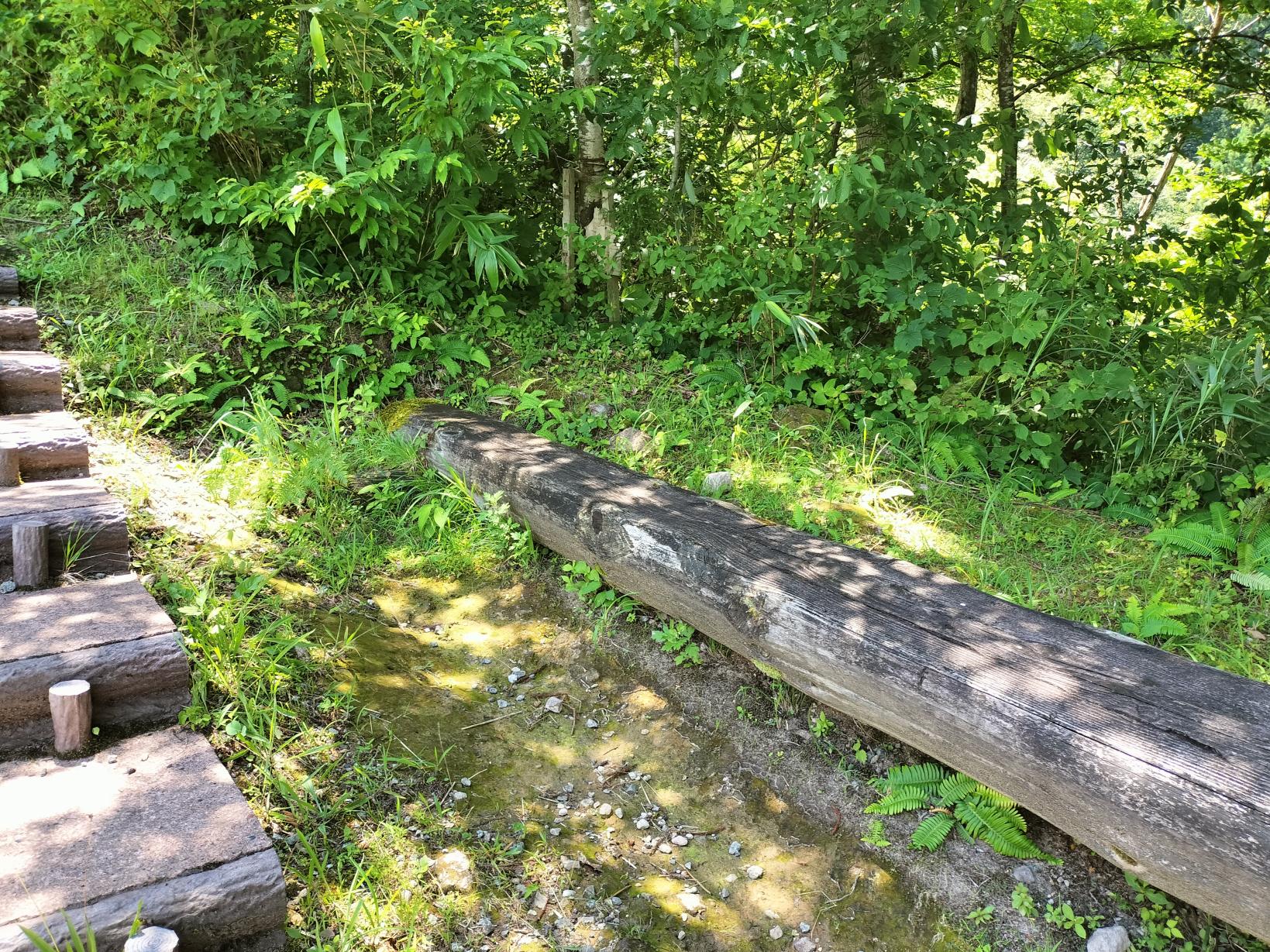 ゲレンデに湧く「龍神の湧水」。こちらも静かに湧いています。涼をとったり、喉を潤したり。近くには東屋もあるのでひと休みできますよ。