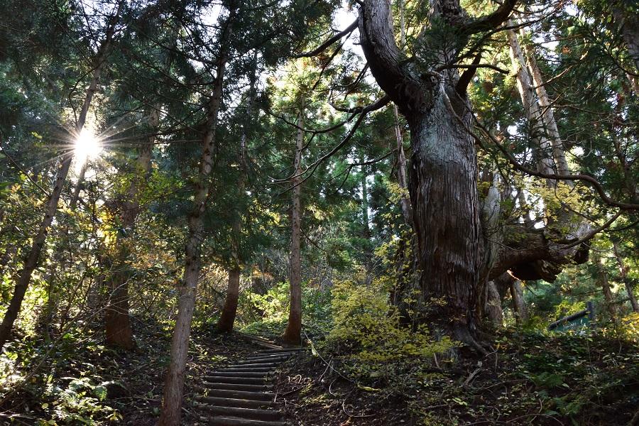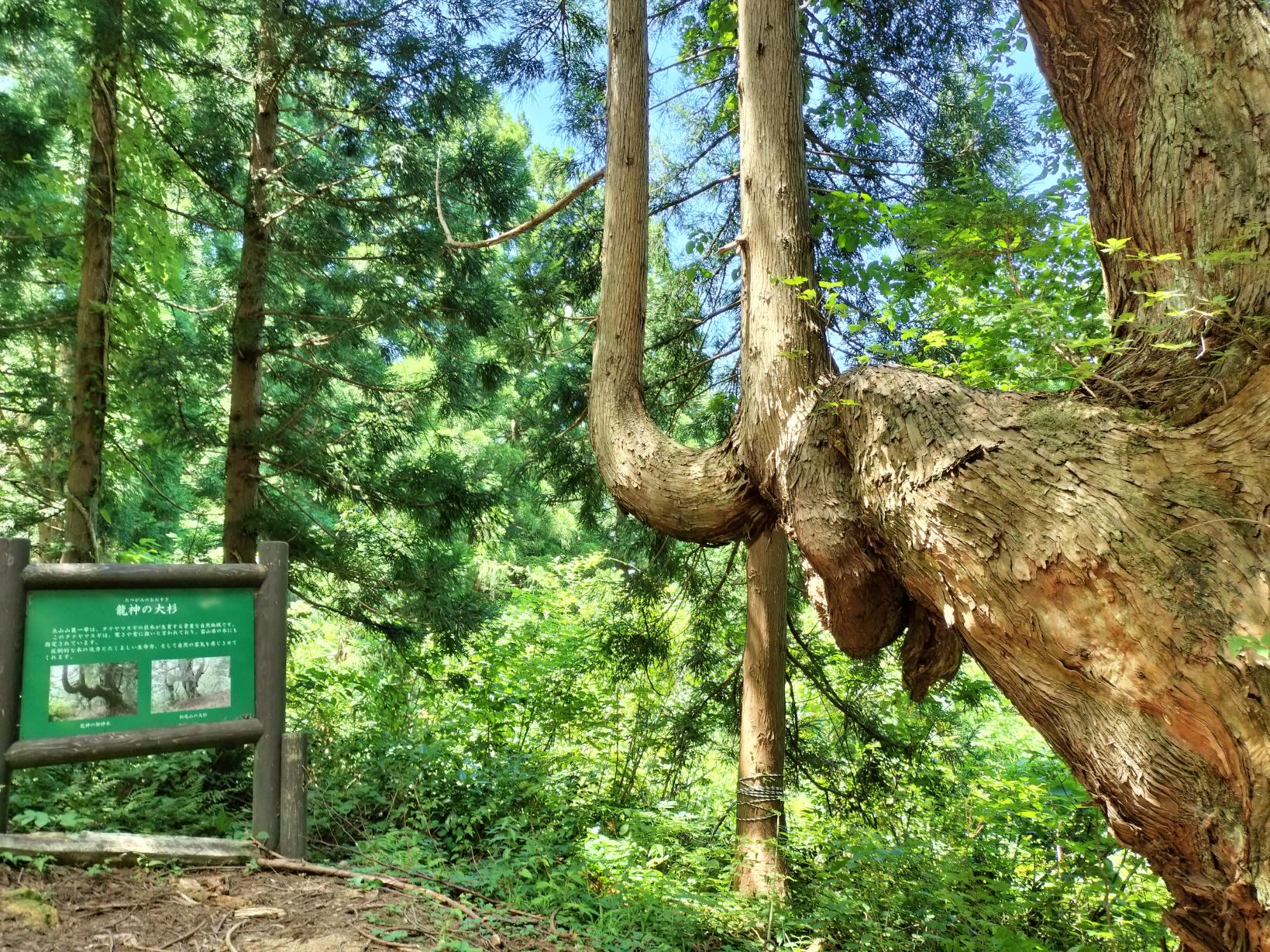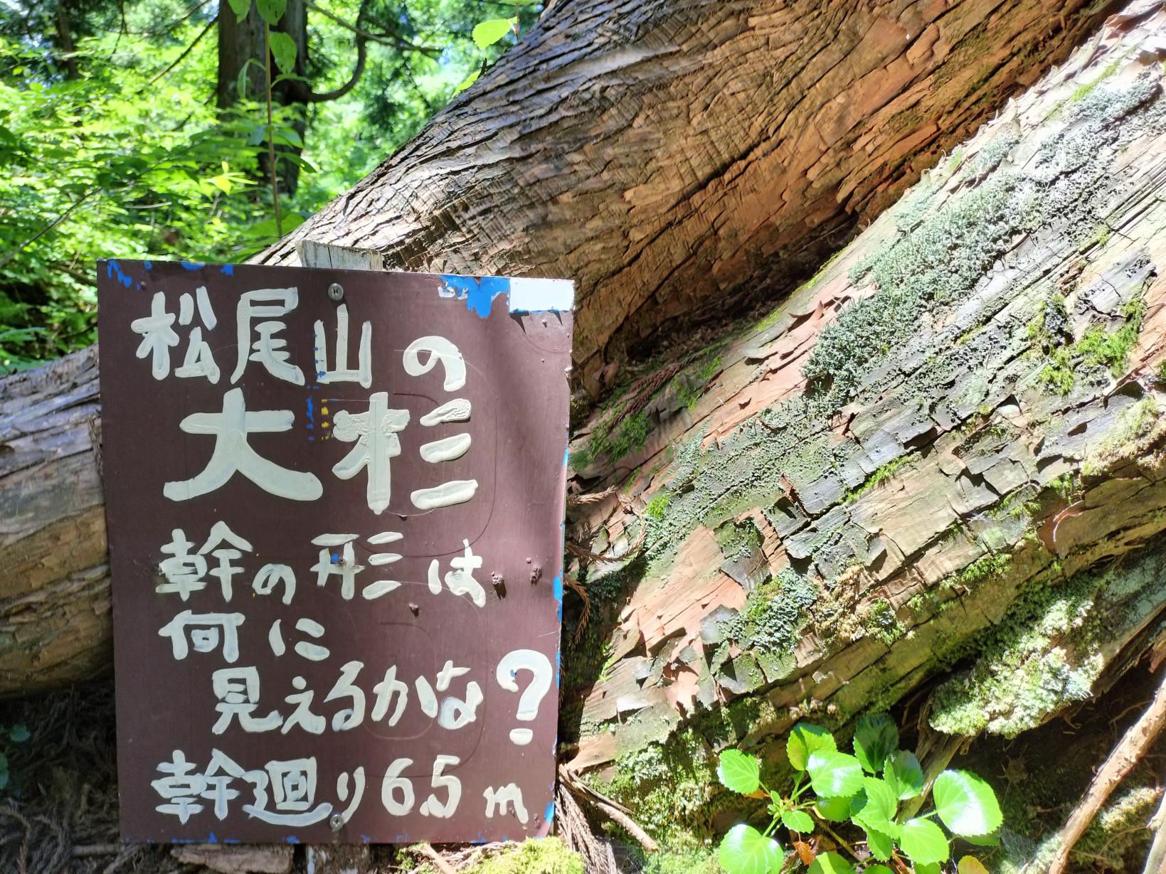 ひときわ大きなタテヤマスギは「松尾山の大杉」「龍神の御神木」と名付けられています。